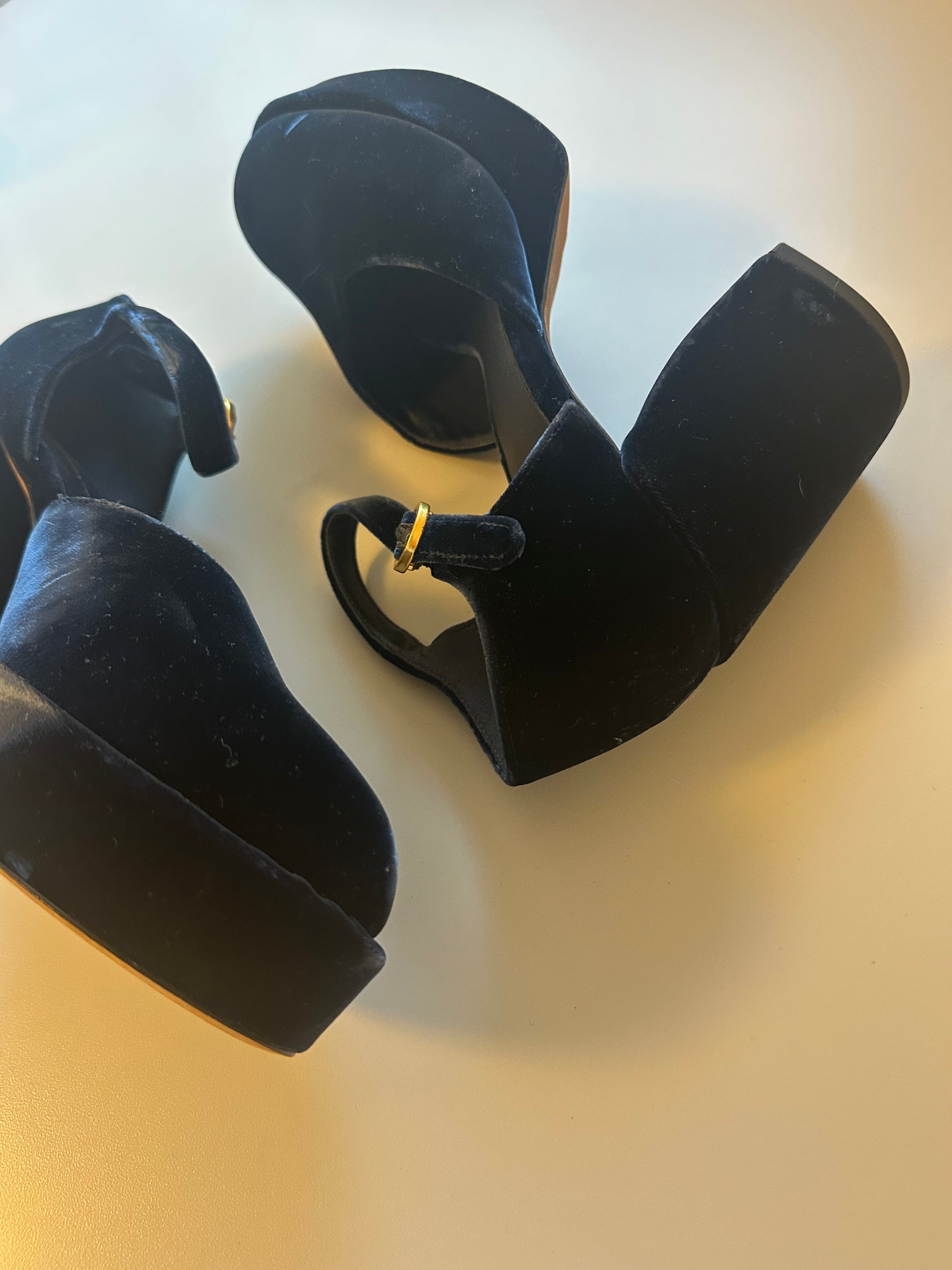 3.1 Phillip Lim Naomi Navy Velvet Platform Maryjane Heels | Size 39.5