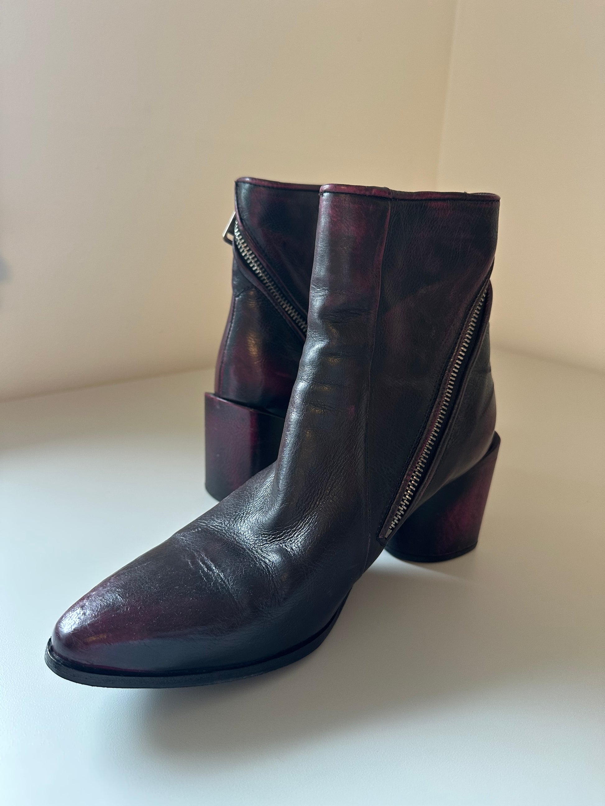 A.S. 98 Earl Womens Leather Zipper Ankle & Booties Boots in Fuschia/Black | Size 38