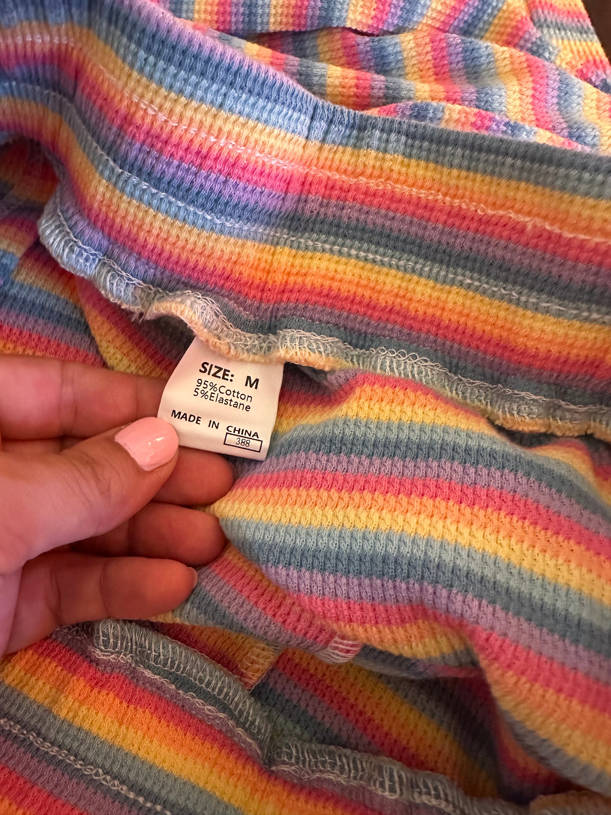 Super cute and comfy pastel striped women’s lounge pants. Fabric is a waffle knit. I’m also selling the matching top.