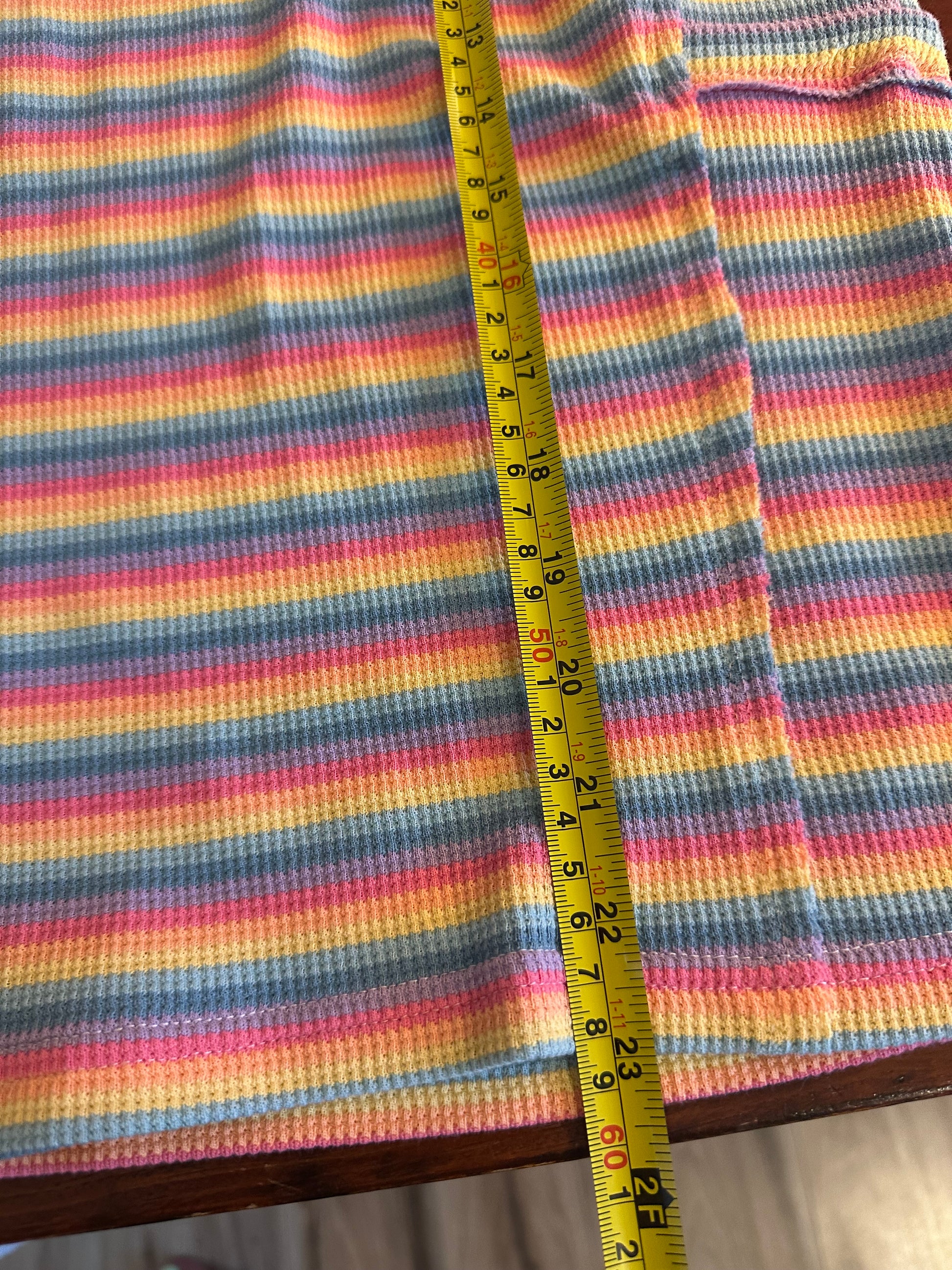 Cute muscle tee in a variety of pastel colored stripes. Slightly boxy fit, excellent condition.
