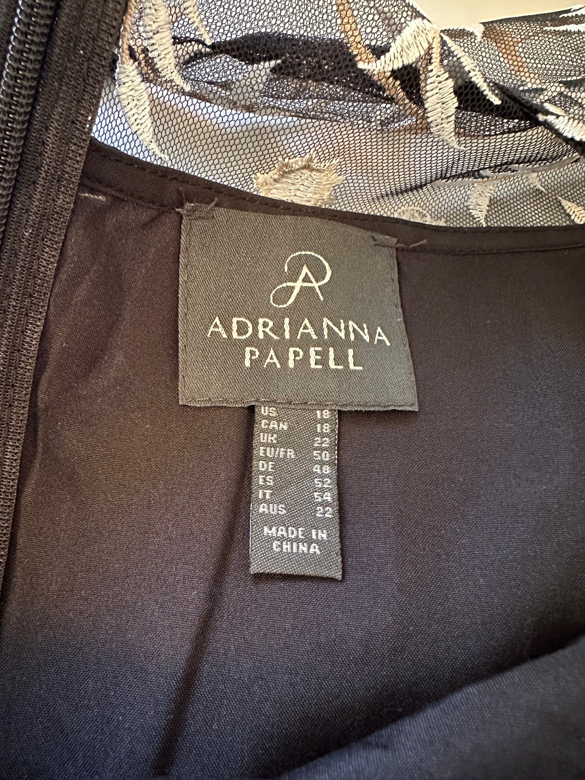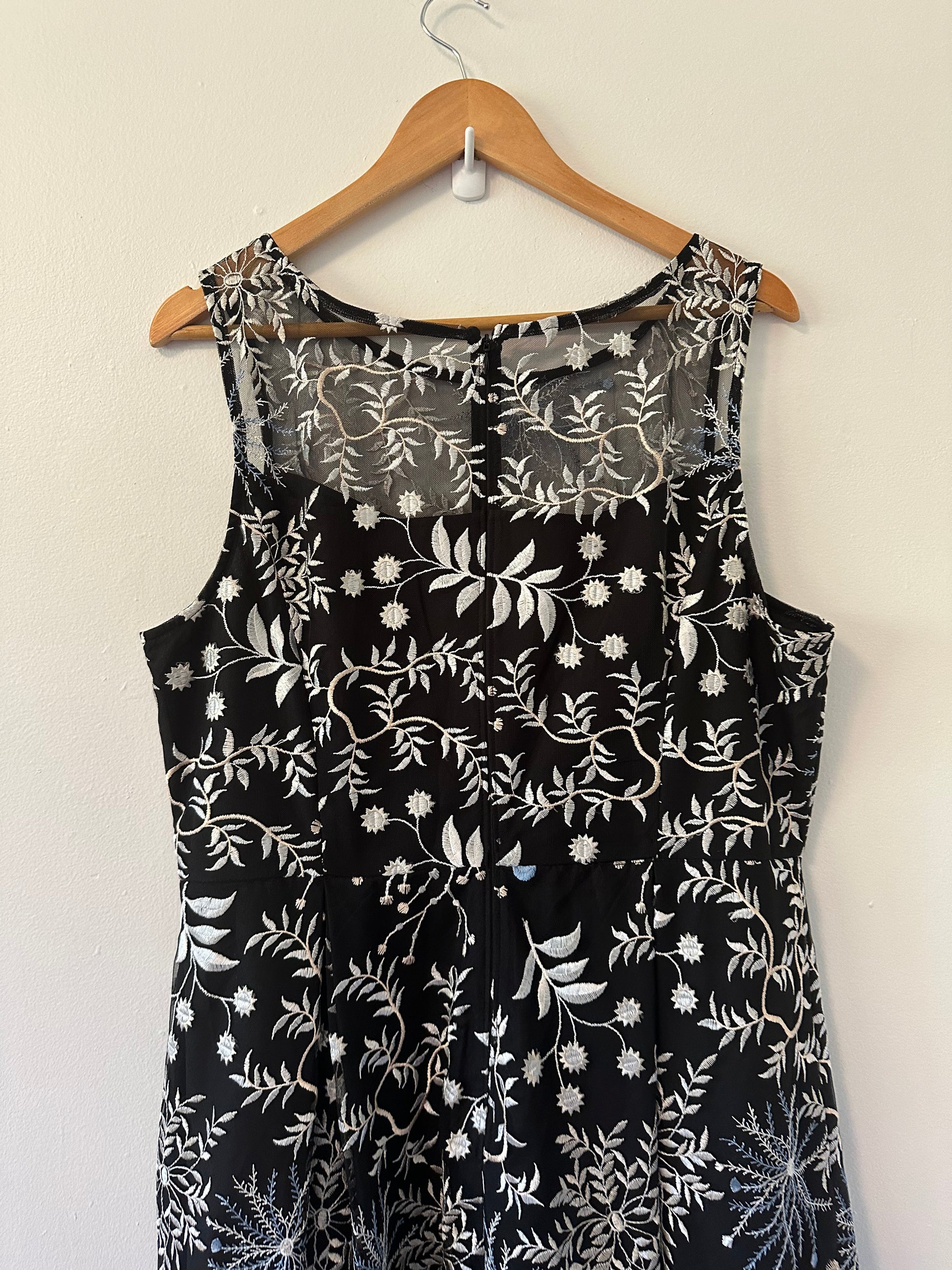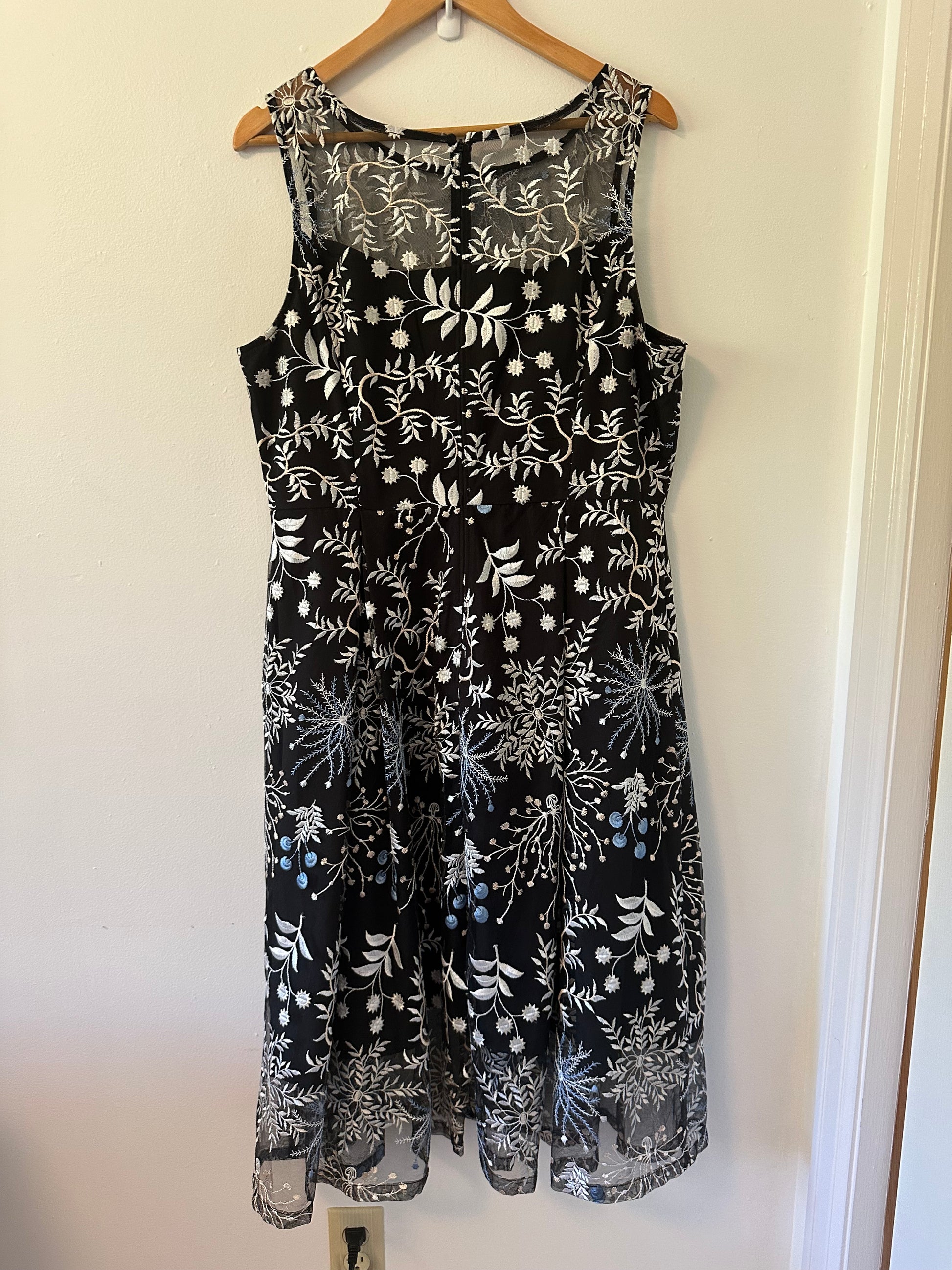 Adrianna Papell Black and White Floral Fit and Flare Midi Dress | Size 18
