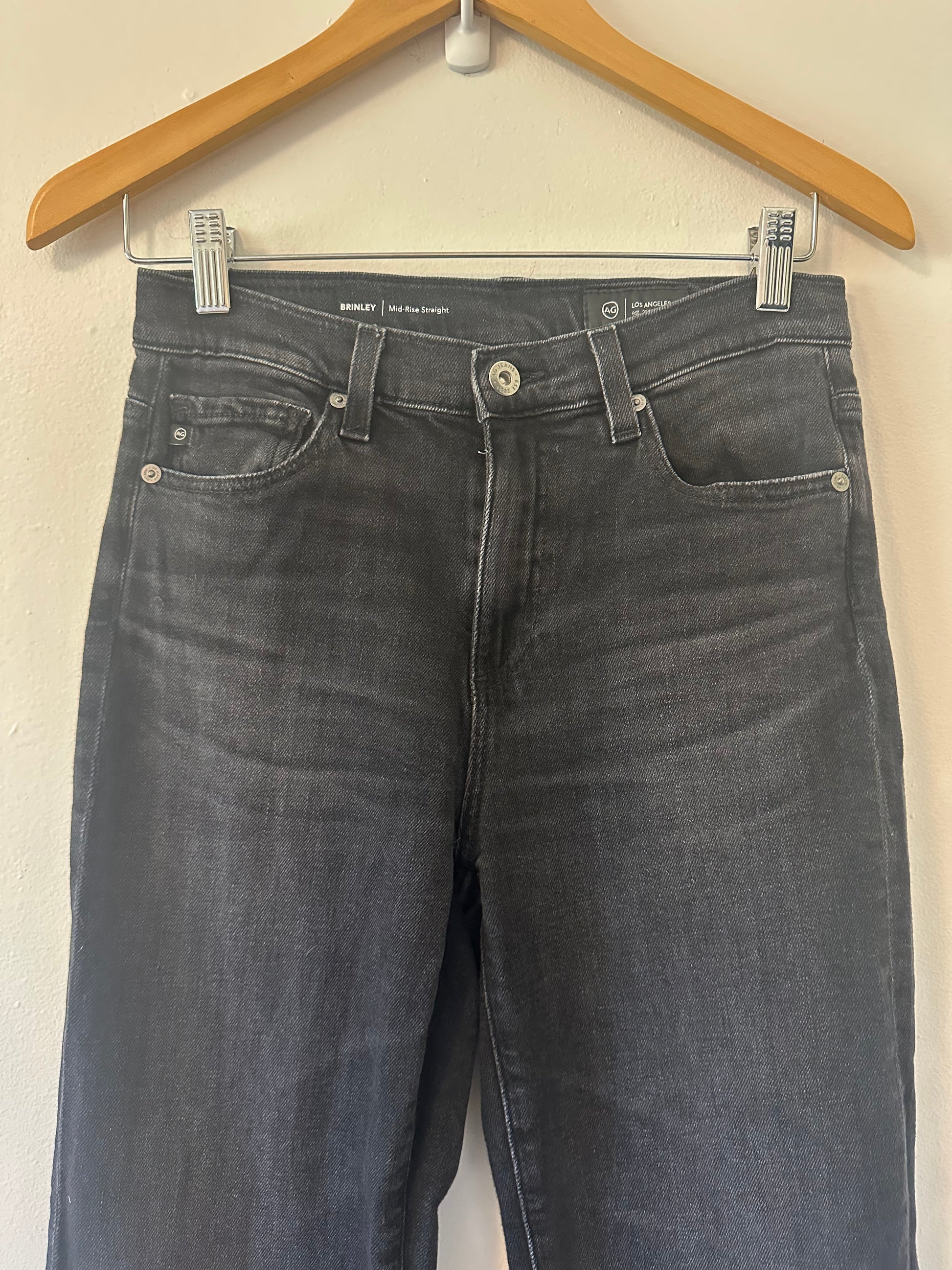 AG Adriano Goldschmied Brinkley Straight Leg Mid Rise Black Jeans | Size 25