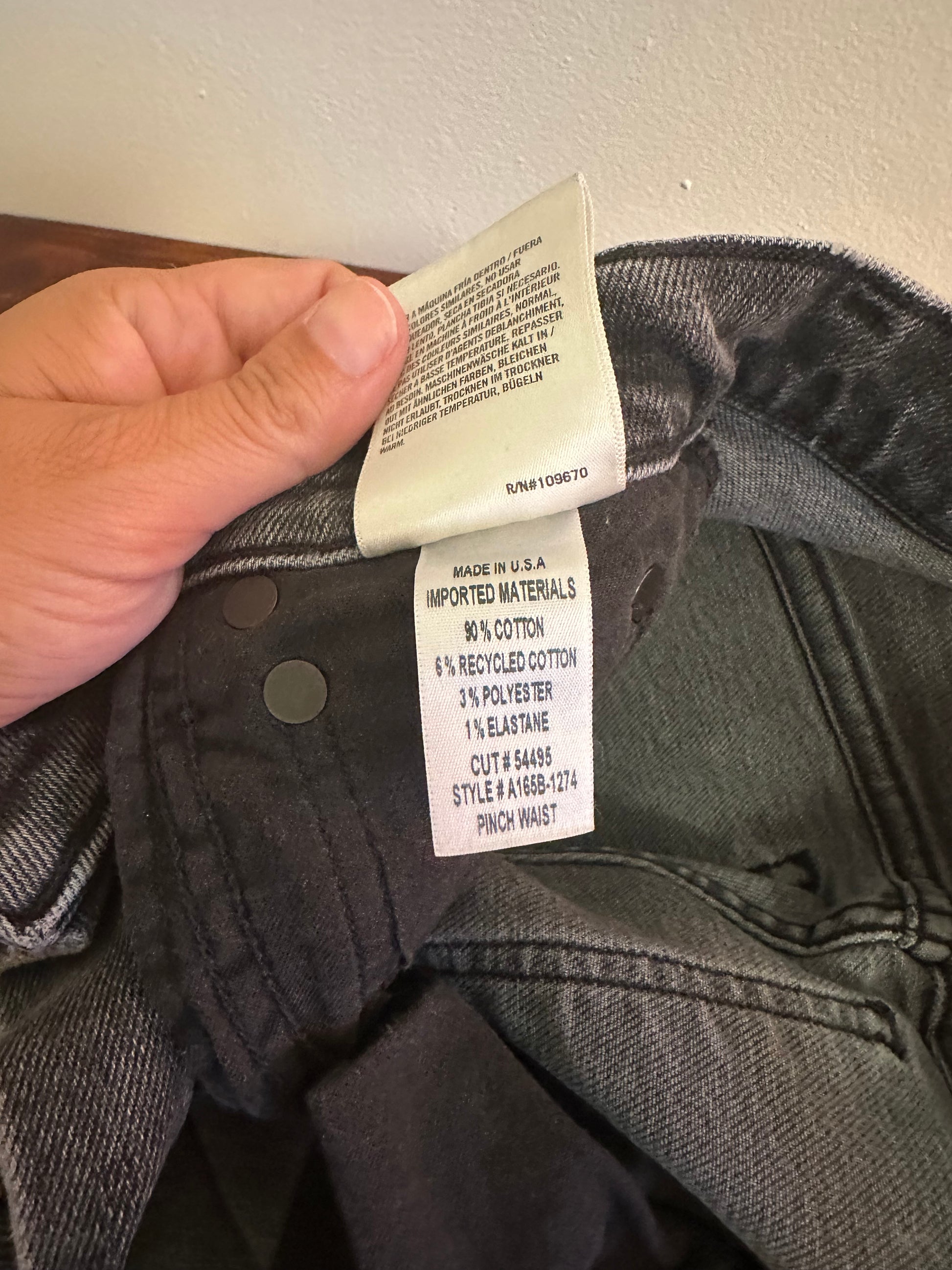 Agolde Pinch Waist High Rise Charcoal Skinny Jeans in Interlude - Size 24