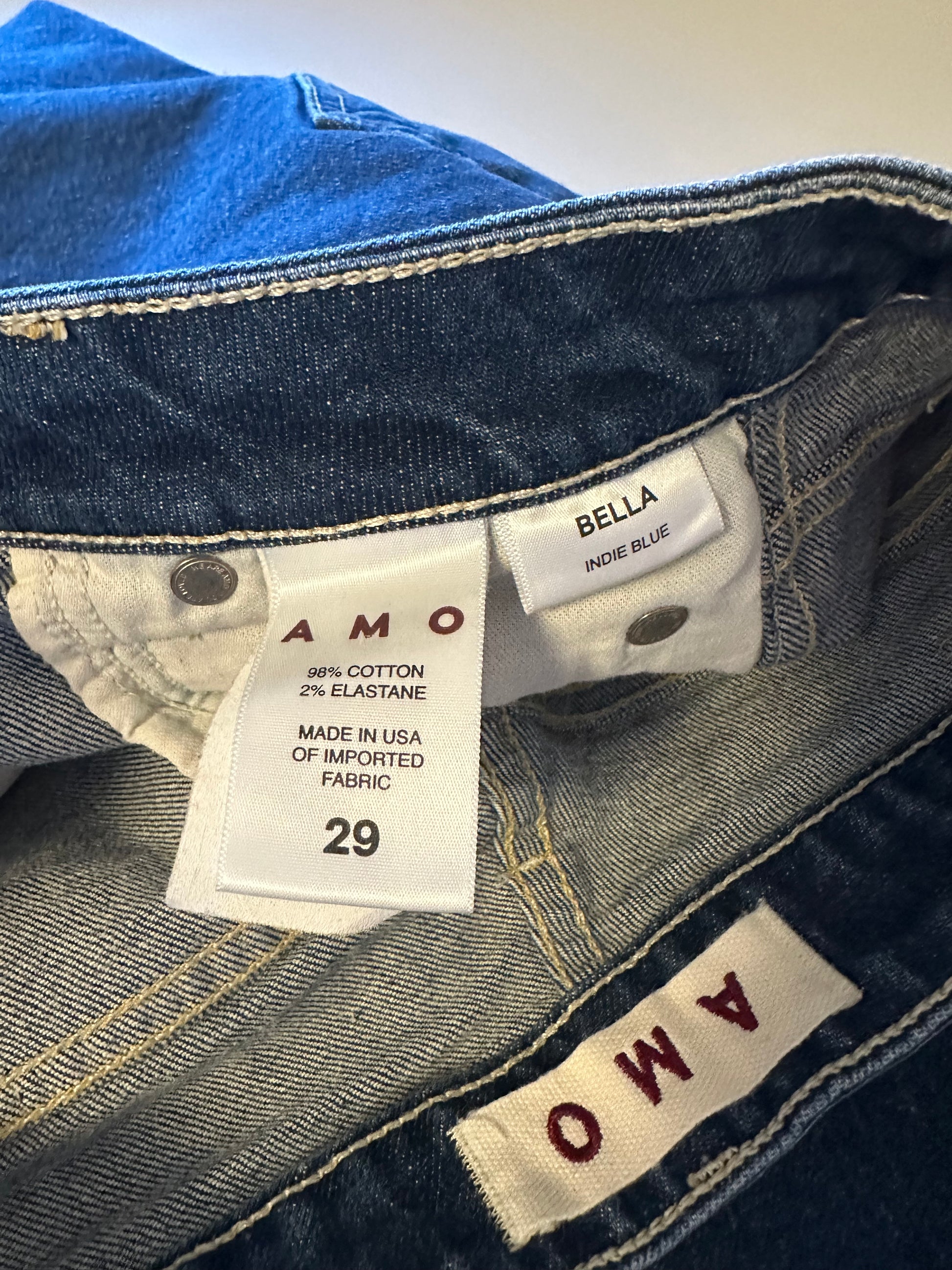 AMO Denim Bella Dark Blue Flare Jeans in Indie Blue | Size 29