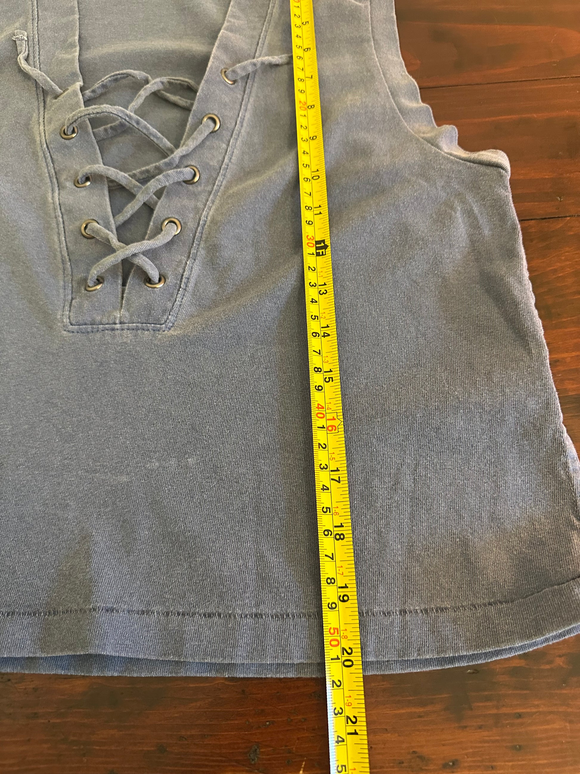 AMO Women's Aviva Blue Lace-Up Tank Top in Blue - Size Small