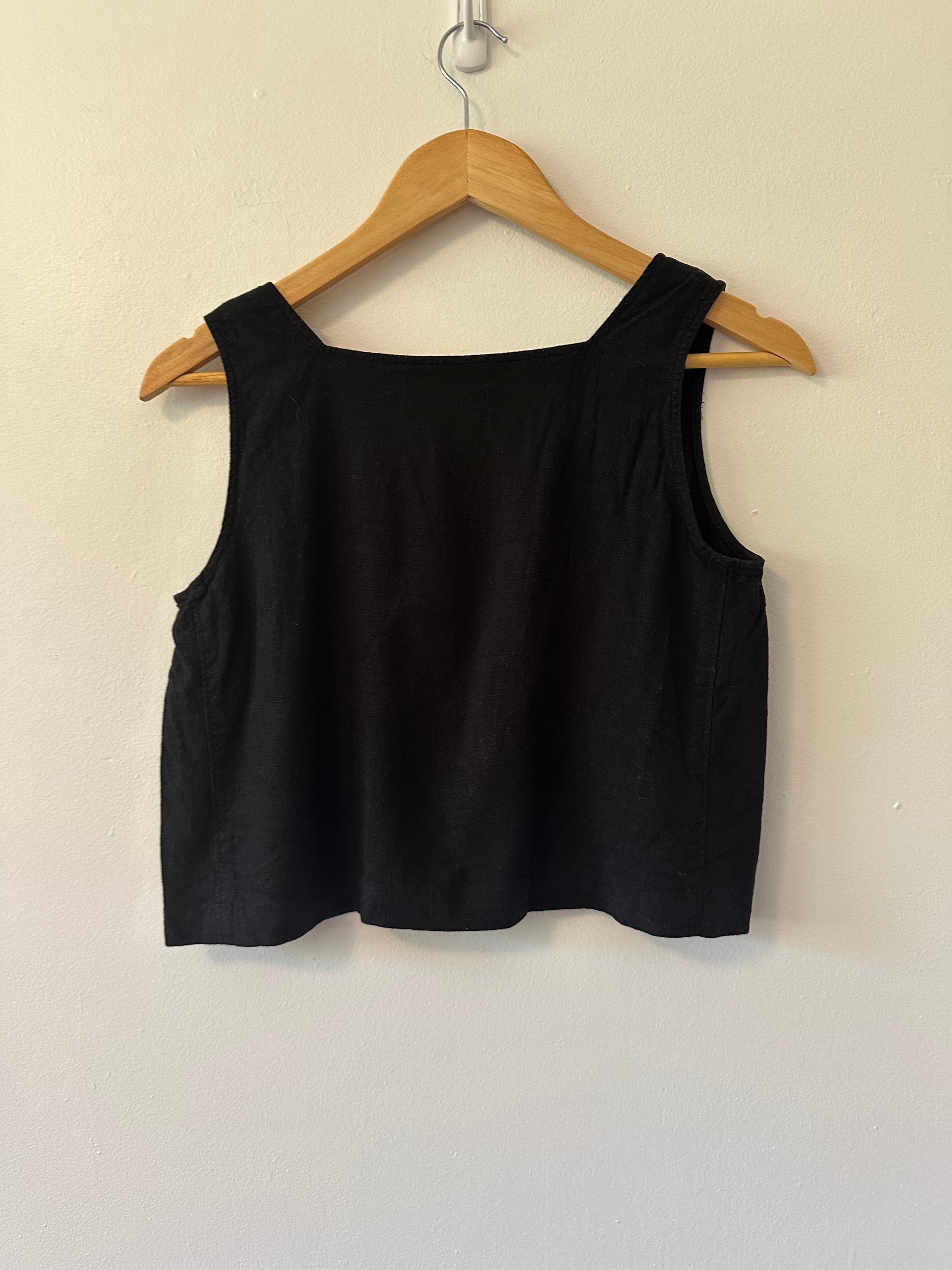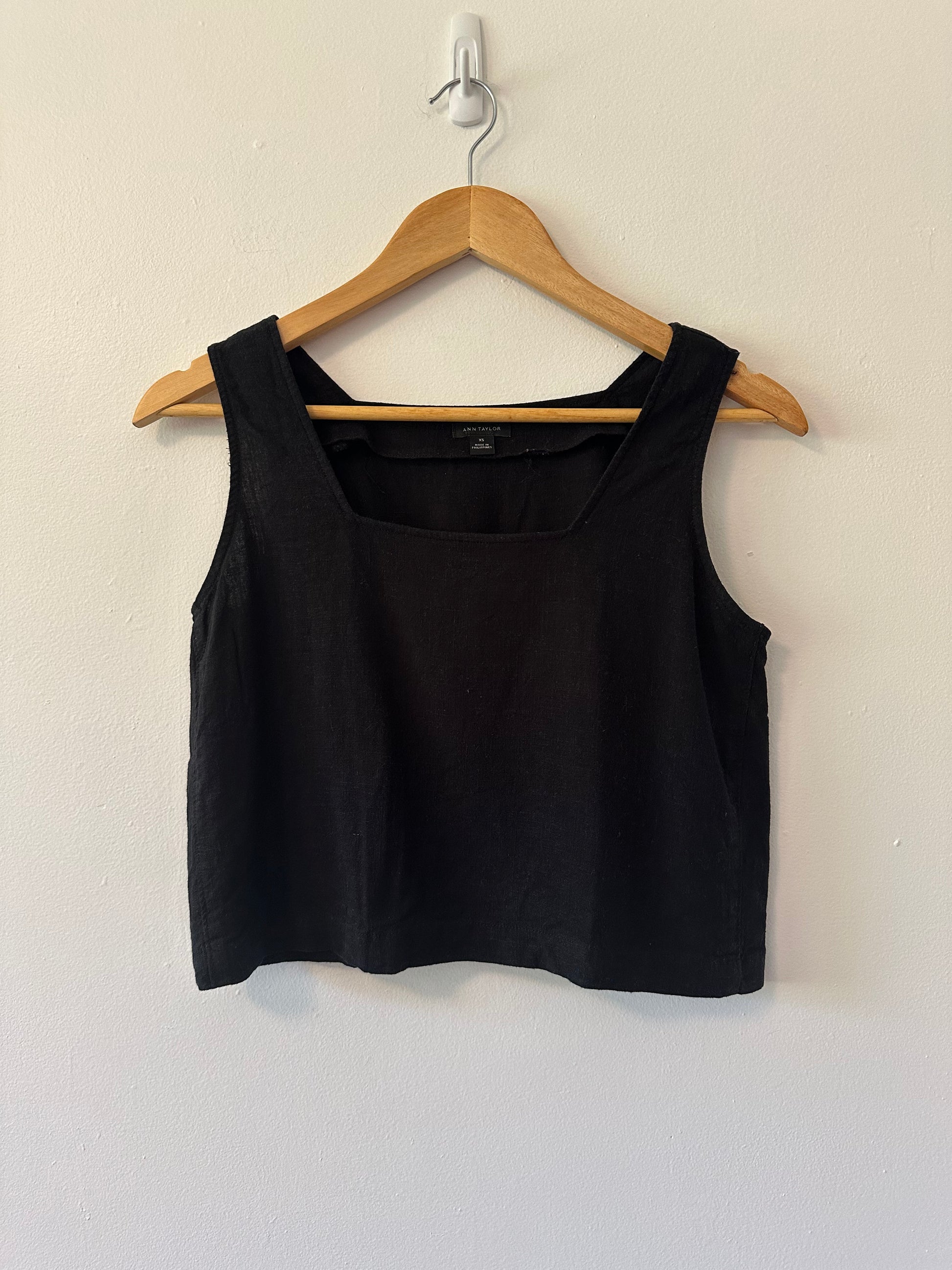 Ann Taylor Black Linen Blend Cropped Tank Top | Size XS
