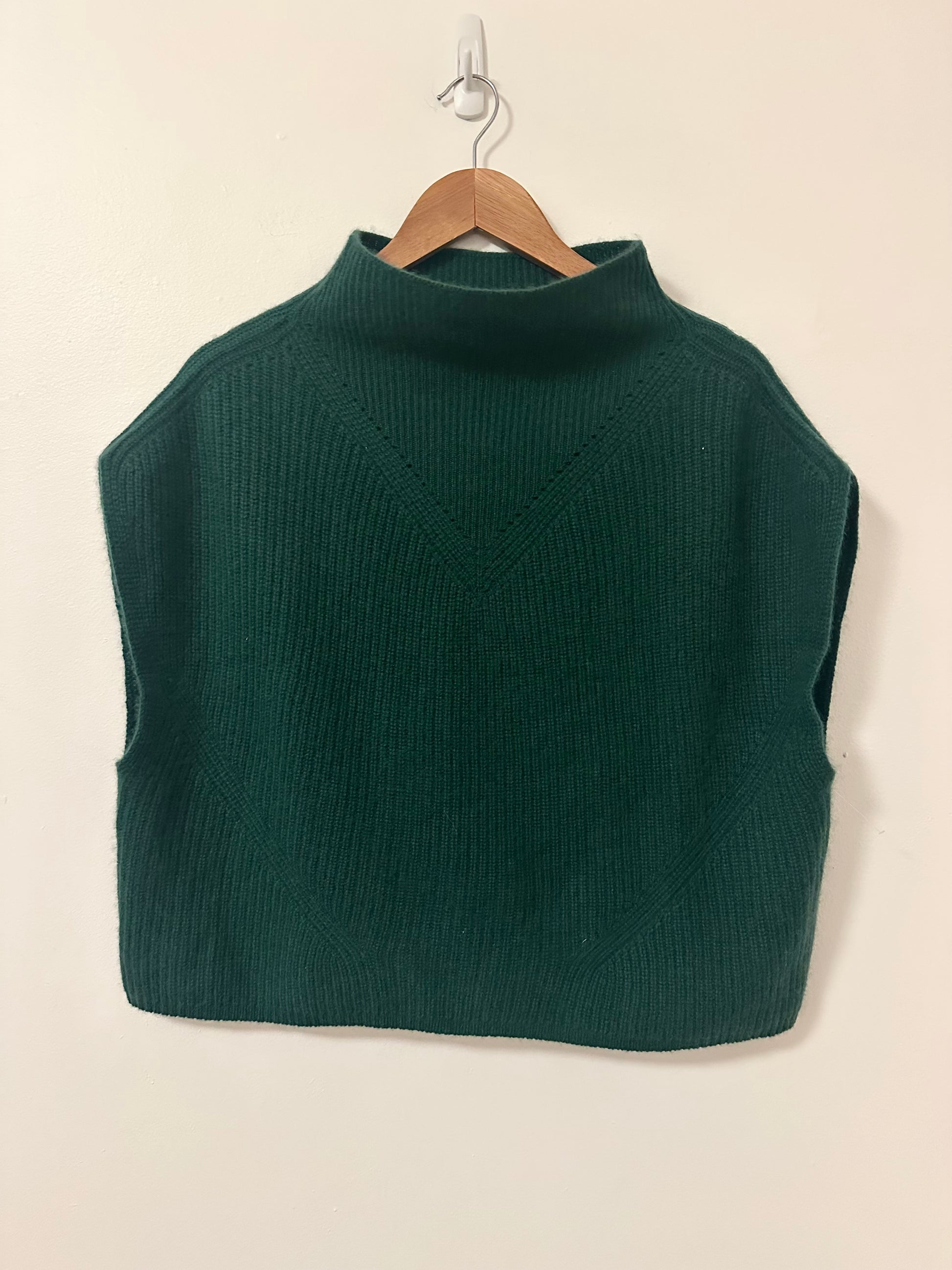 Anthropologie Enzo Oversized Ribbed Cashmere Sweater Vest in Green | Size Small