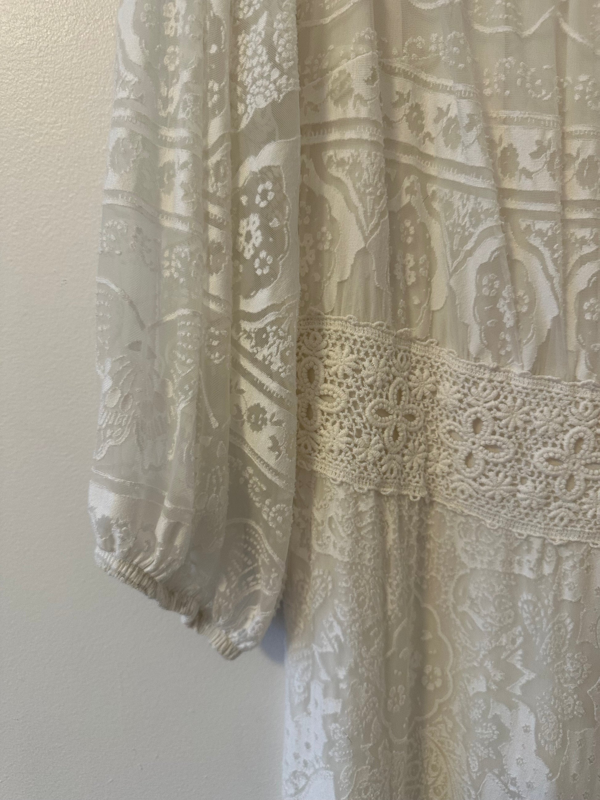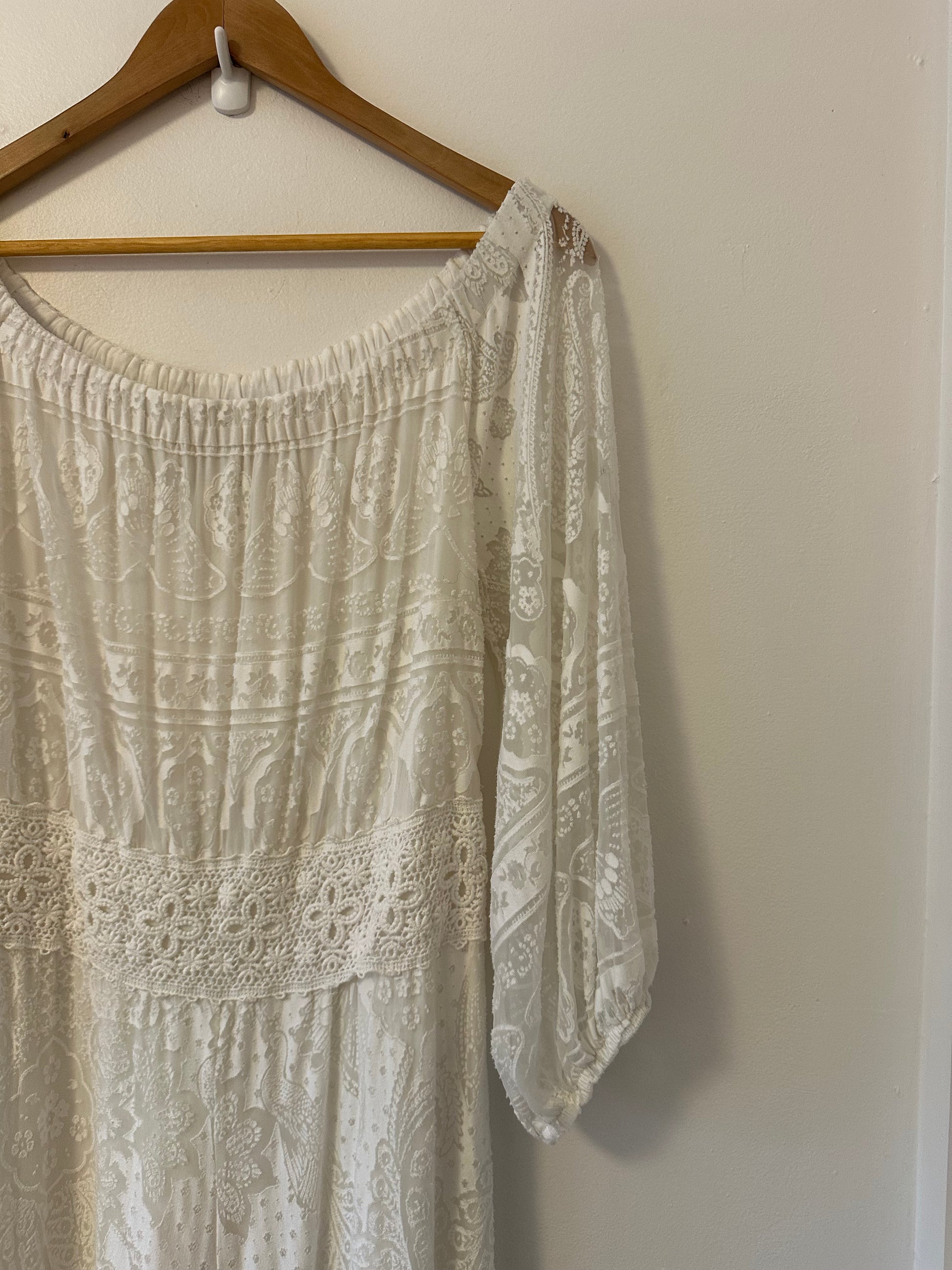 Anthropologie x Farm Rio Elliott Lace White Off the Shoulder Jumpsuit | Size Medium