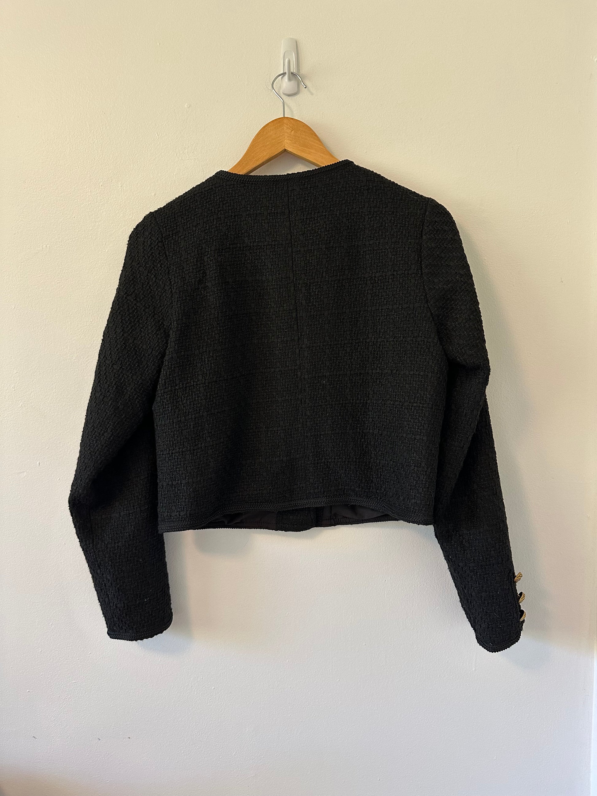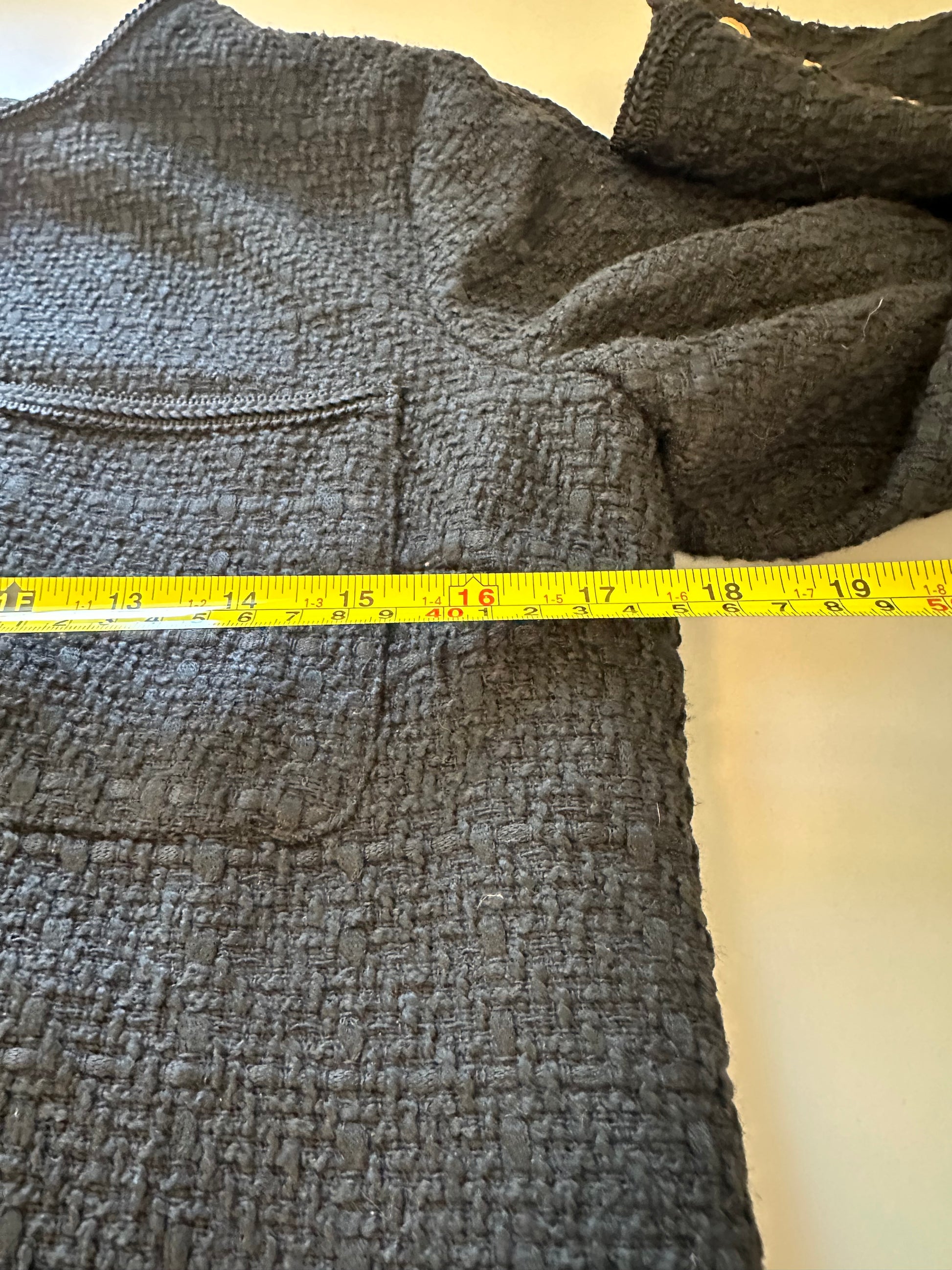 Aqua Black Tweed Textured Blazer Jacket with Gold Buttons | Size Medium