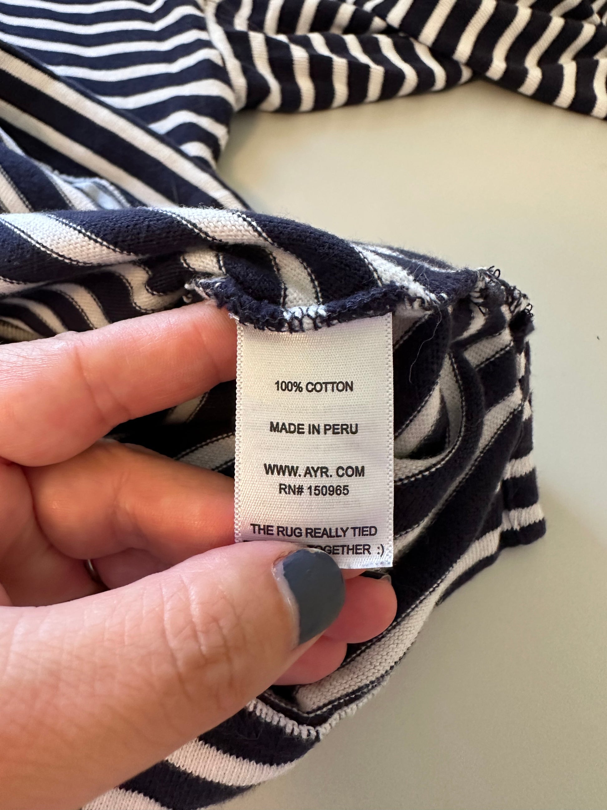 Classic nautical stripes accent this comfy and casual AYR pullover, which is crafted from pure cotton for a soft feel. Just throw on simple jeans and flats to complete your off-duty look.