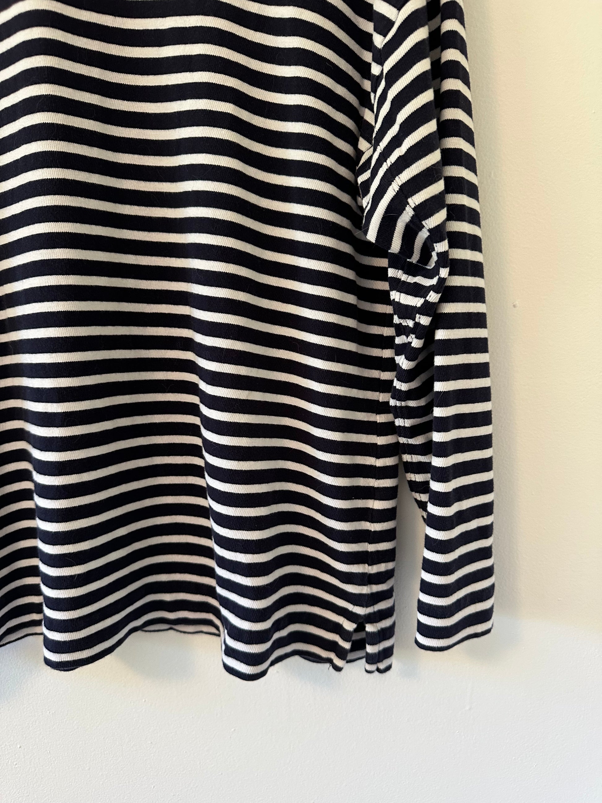 AYR The French Fry Long Sleeve T-Shirt in Navy and White Stripes | Size Large