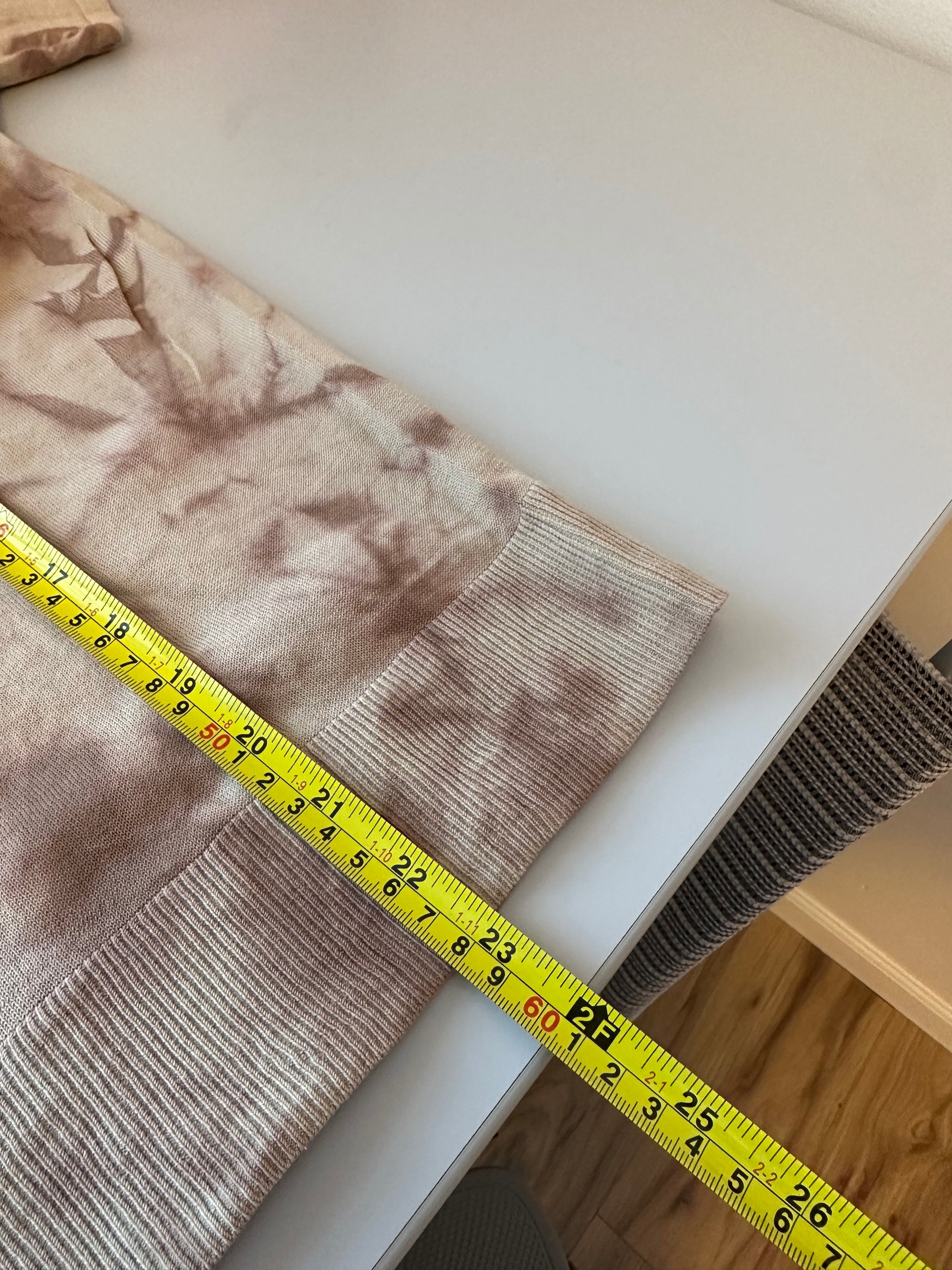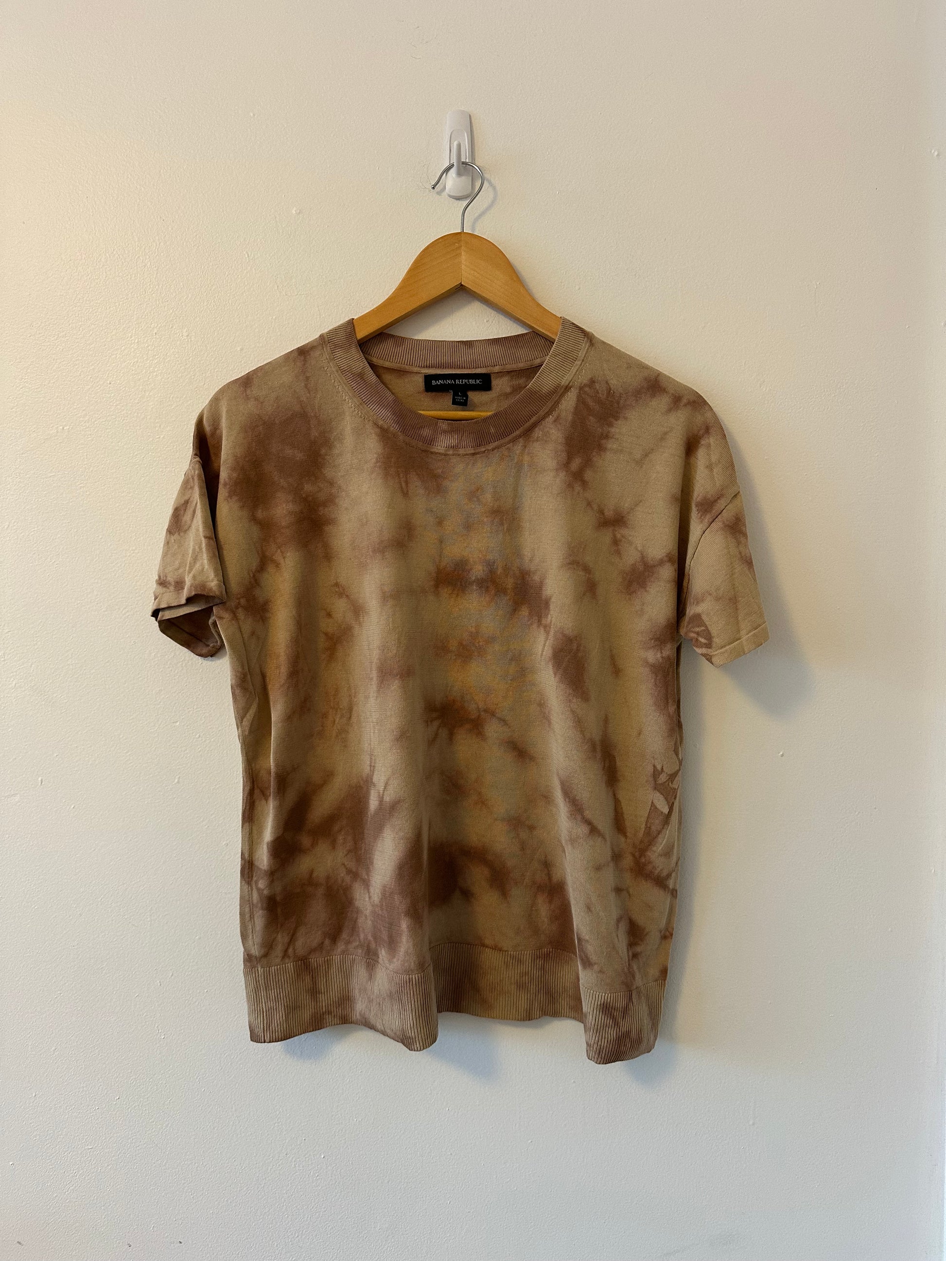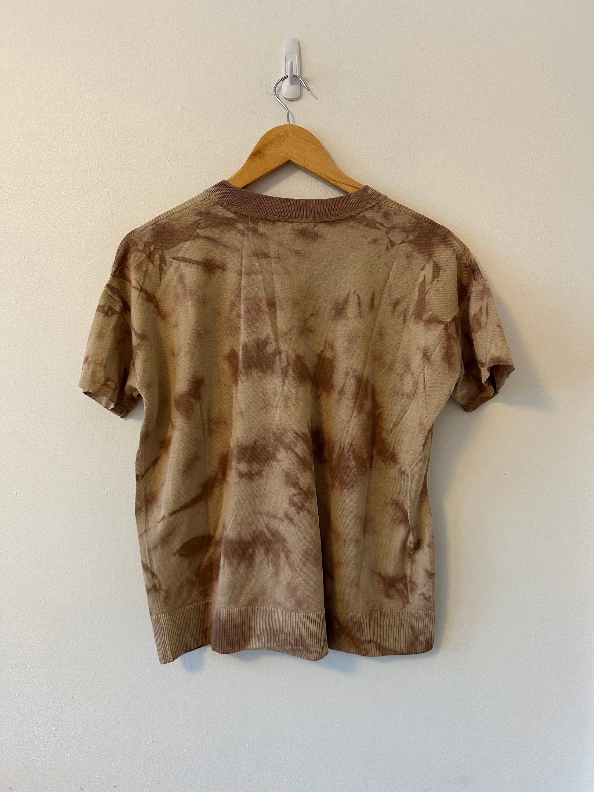 Knit t-shirt in a brown tie dye print. Great condition, fabric tag missing.