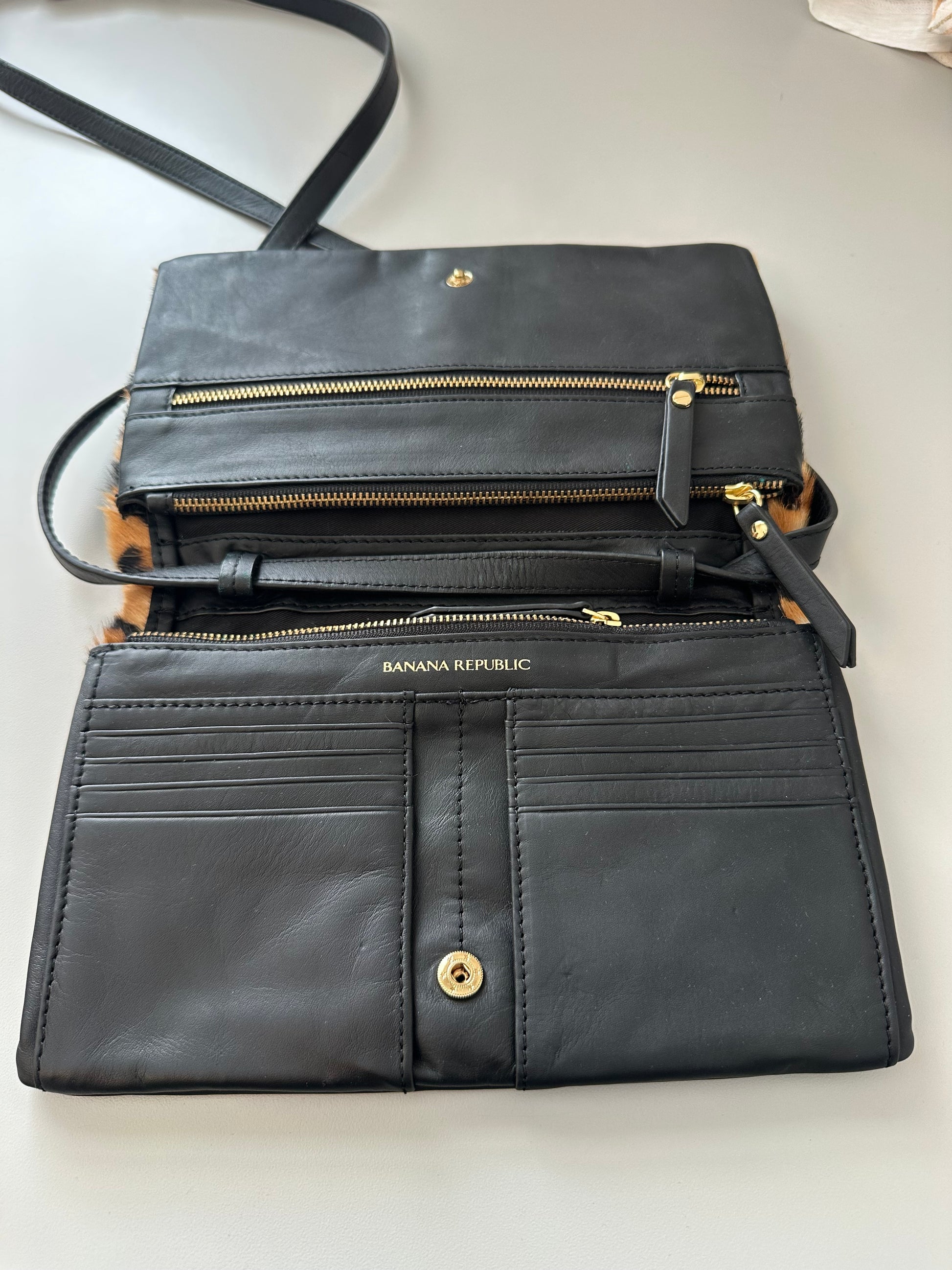 Banana Republic Leopard Print and Black Leather Crossbody Bag