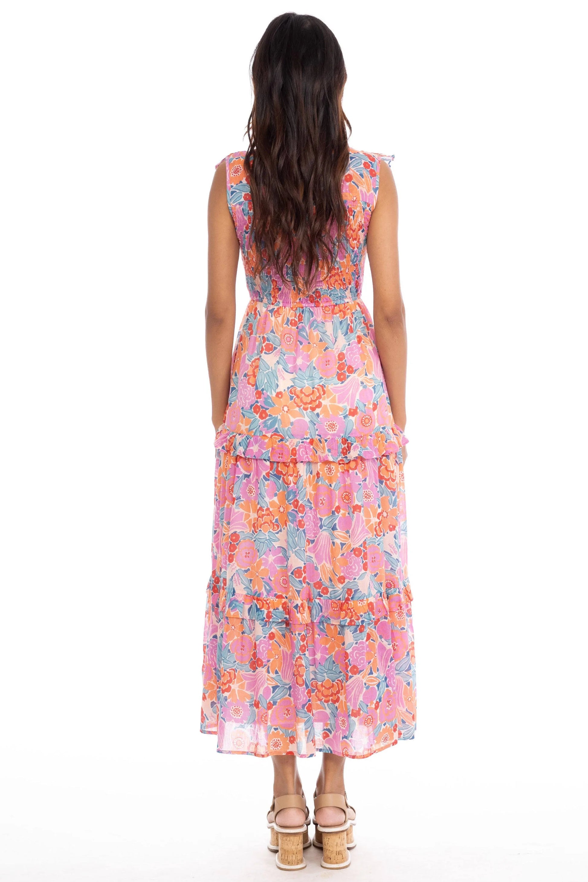 The Iris dress is one of our beloved best-sellers. Smocked through the bodice and accented with soft frills, the skirt falls to the shin in a gentle A-line. Fully lined with pockets and a keyhole opening at the back of the neck with a loop-and-button closure.