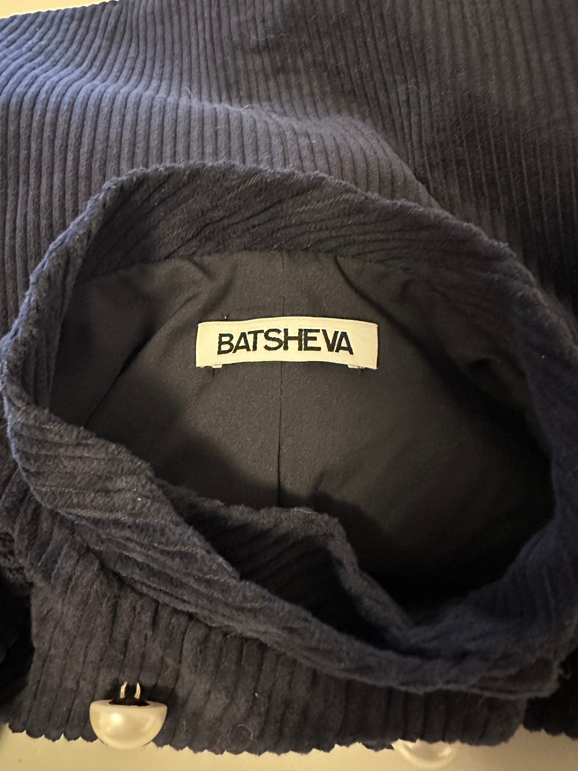 Batsheva Beray Corduroy Coat Double Breasted Mini Dress in Navy | Size XS