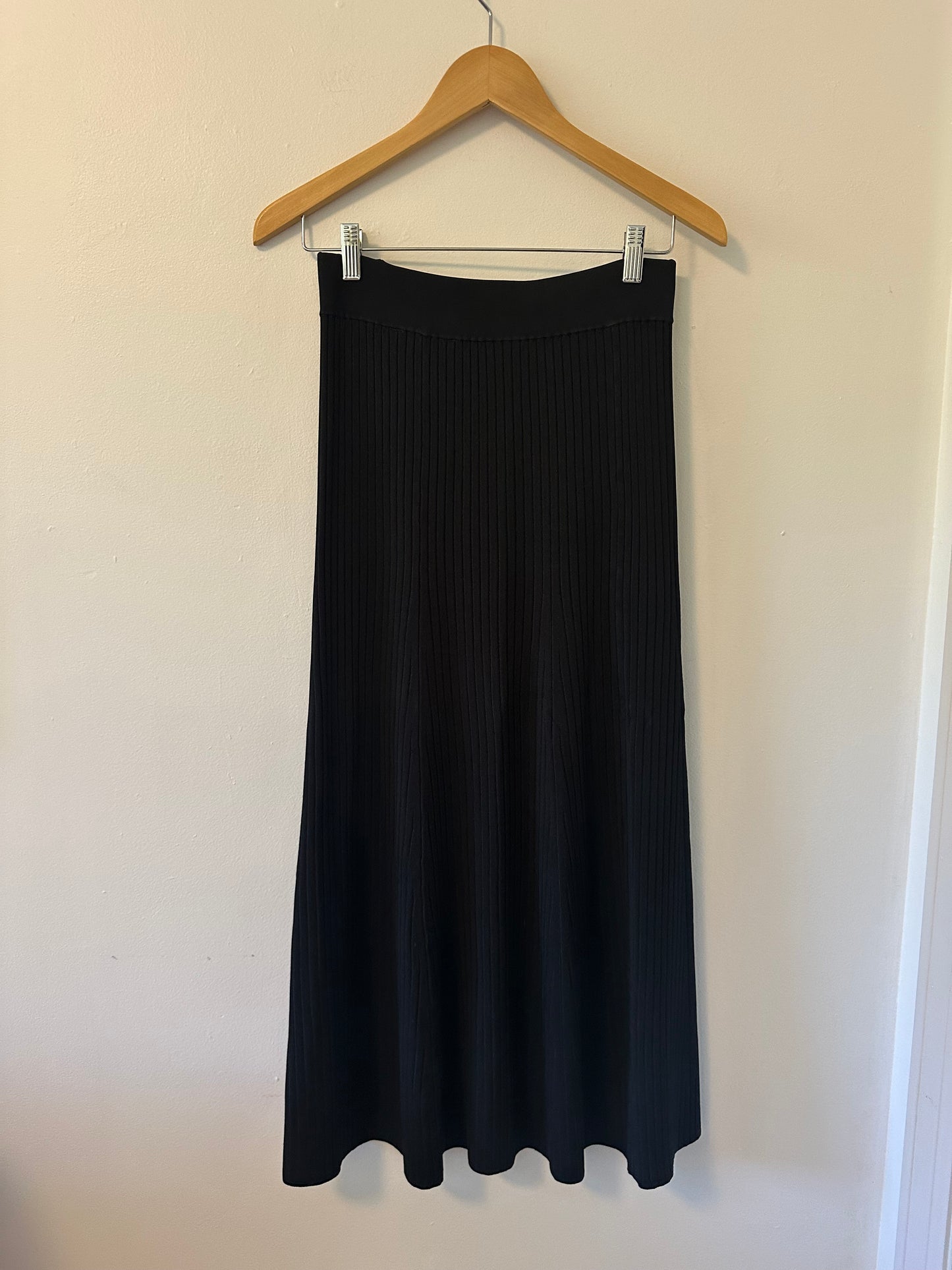 BCBGMaxAzria Black Button-Front Jade Ribbed Knit Midi Skirt | Size Small