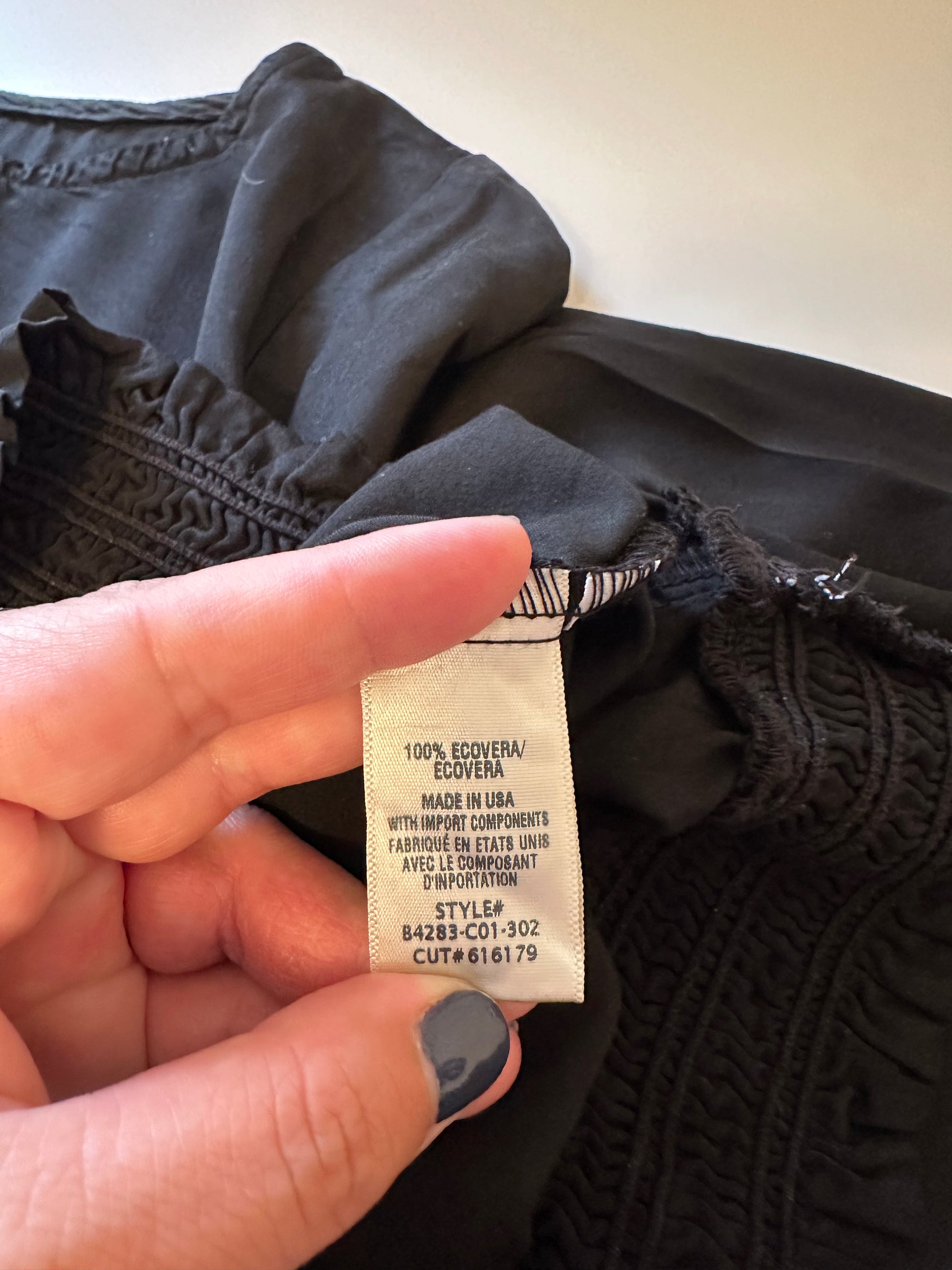 Bella Dahl Satin Smocked Waist Top in Black | Size Medium