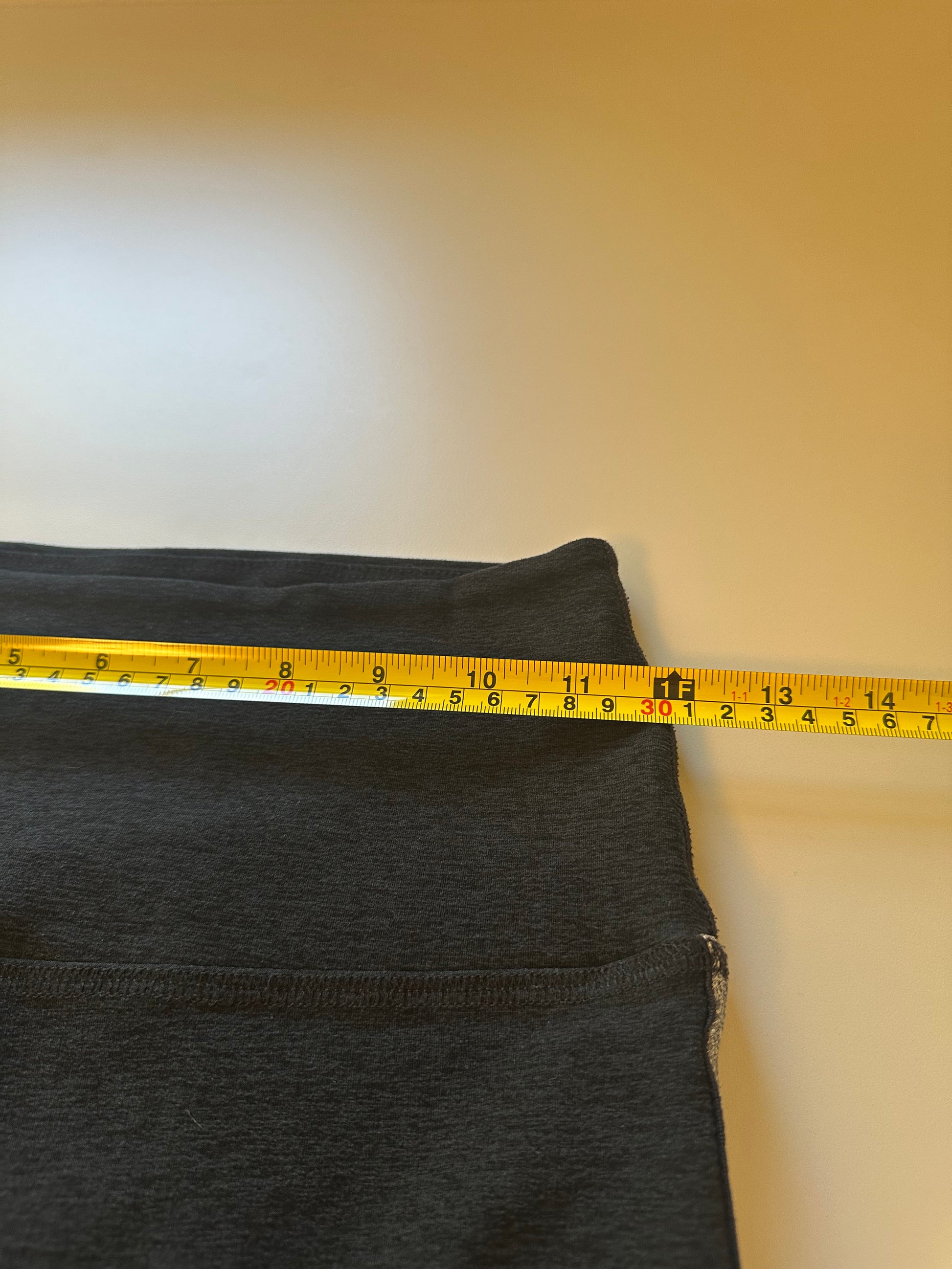 5" waistband, sits at natural waist Midi length, in between calf and ankle
