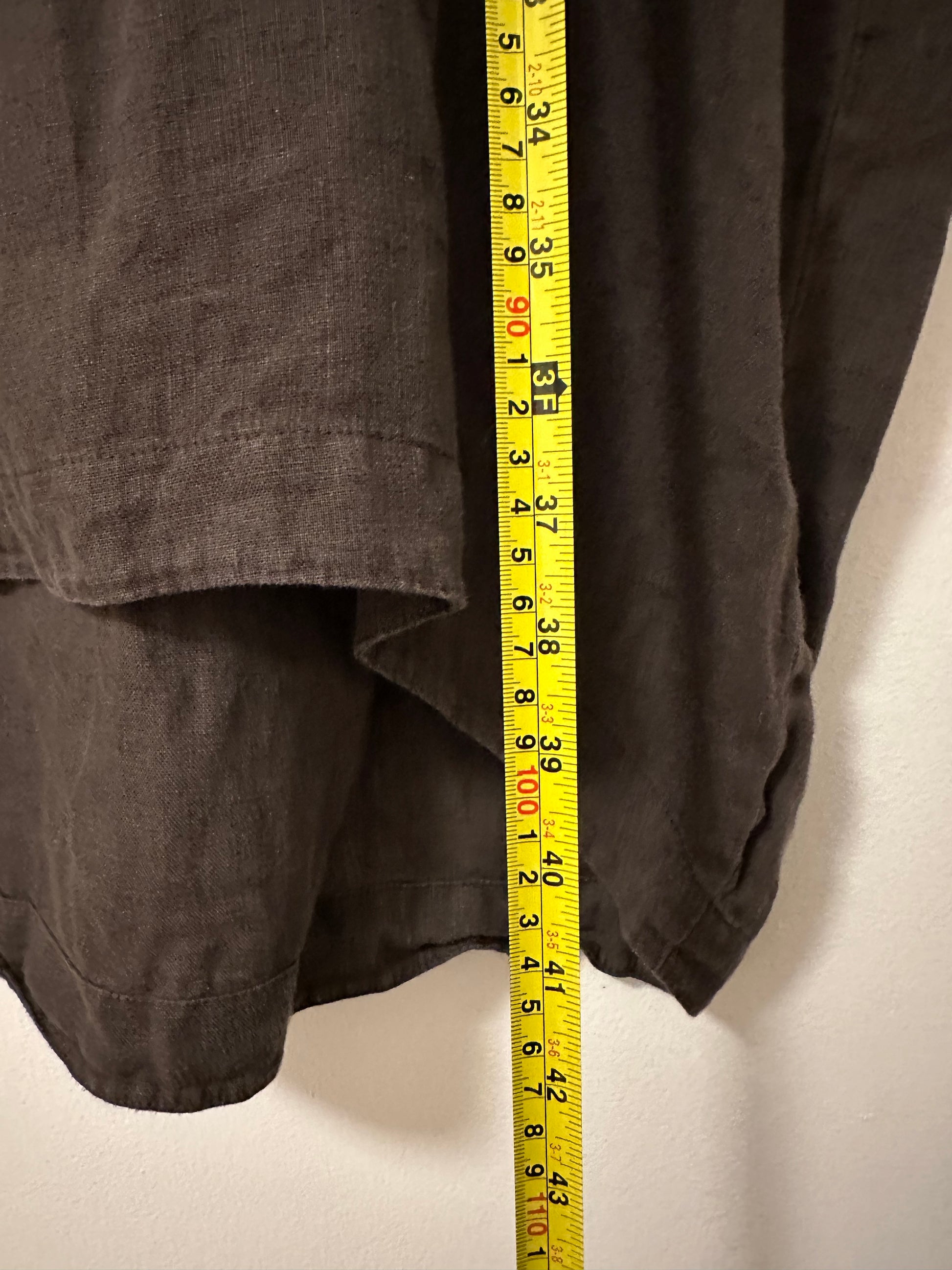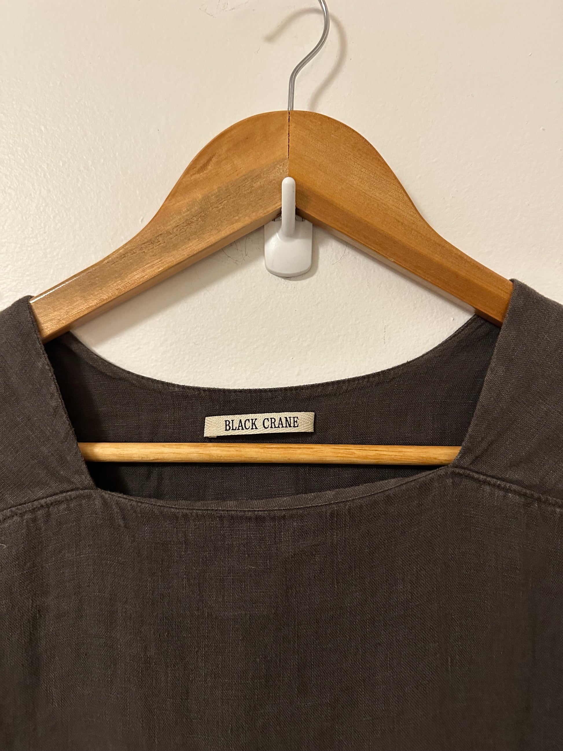 Black Crane Cocoon Short Sleeve Linen Dress in Brown | Size XS