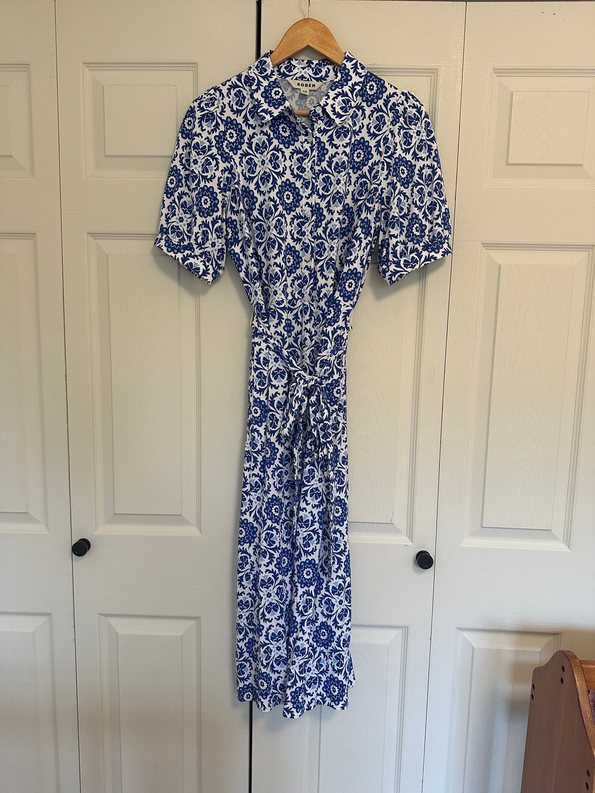 Boden Blue and White Floral Button Down Shirt Dress - Size 10