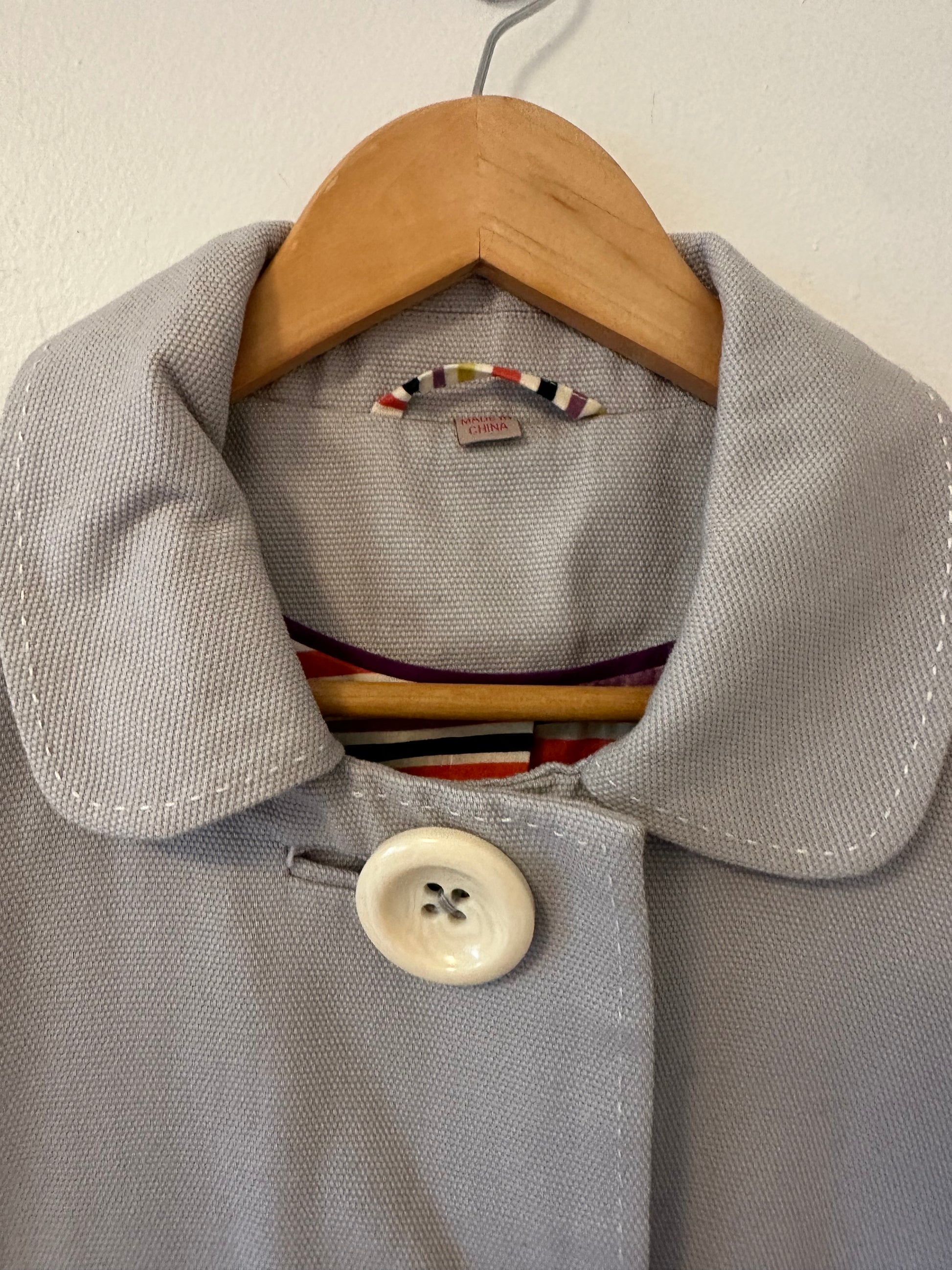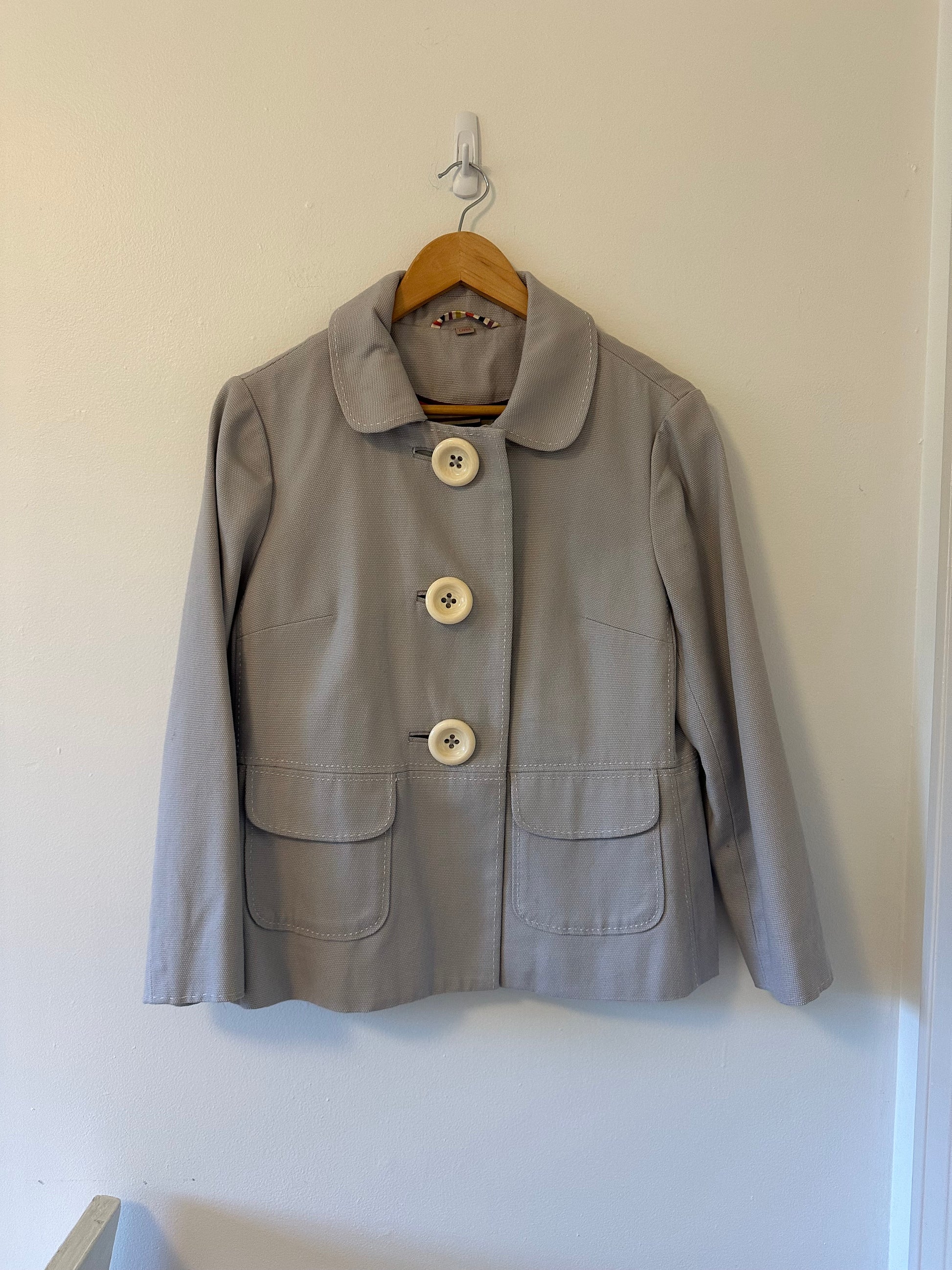 Boden Cotton Jacket with Peter Pan Collar and Big Buttons in Gray - Size 10