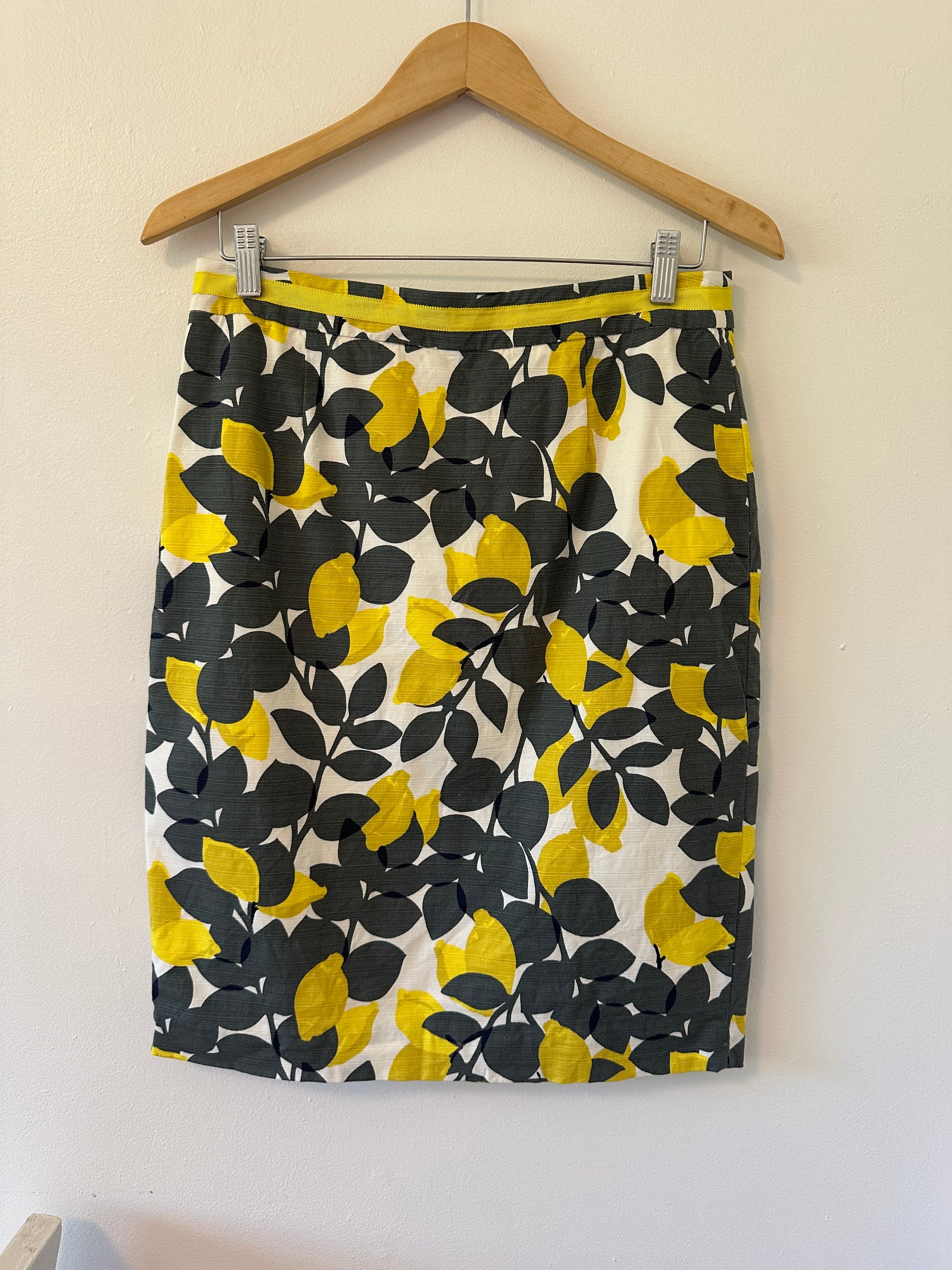 Boden Floral Print Modern Pencil Skirt in Yellow and Gray - Size 8
