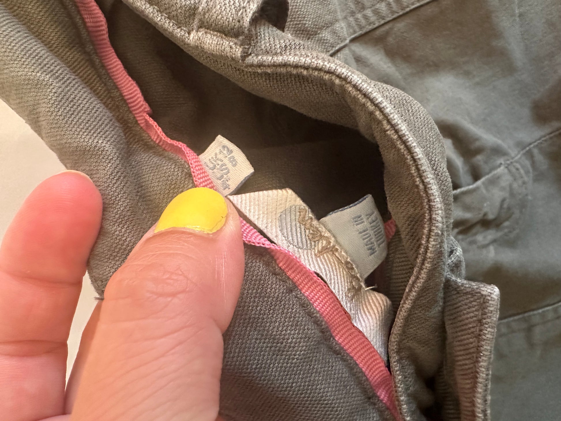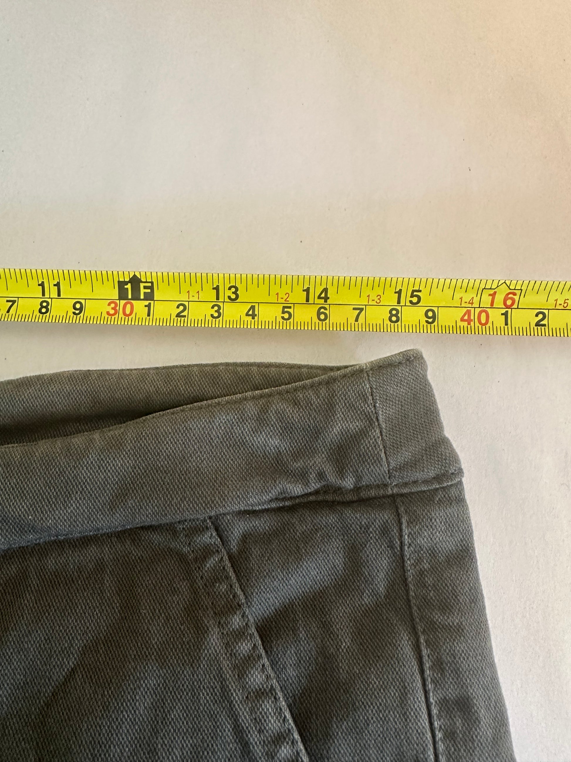Comfortable olive green shorts with back patch pockets.