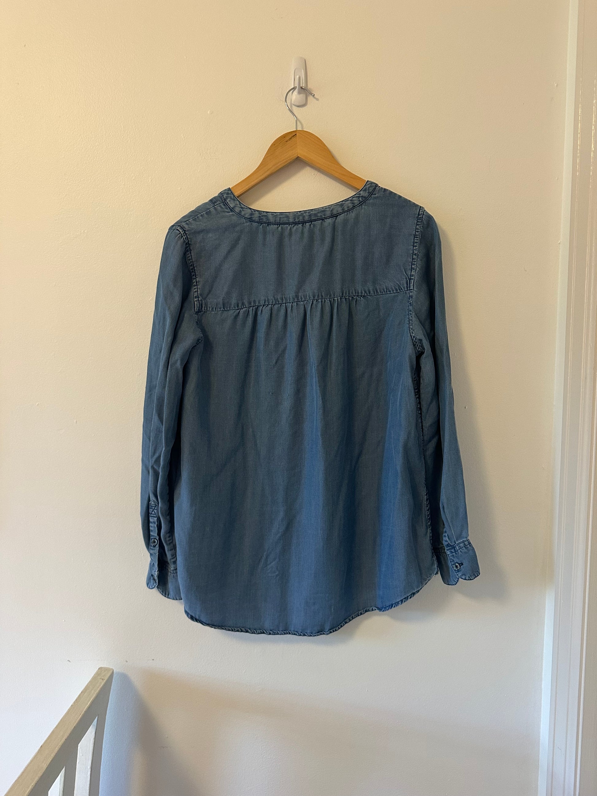 Boden Split Neck Blue Denim Popover Blouse - Size 10