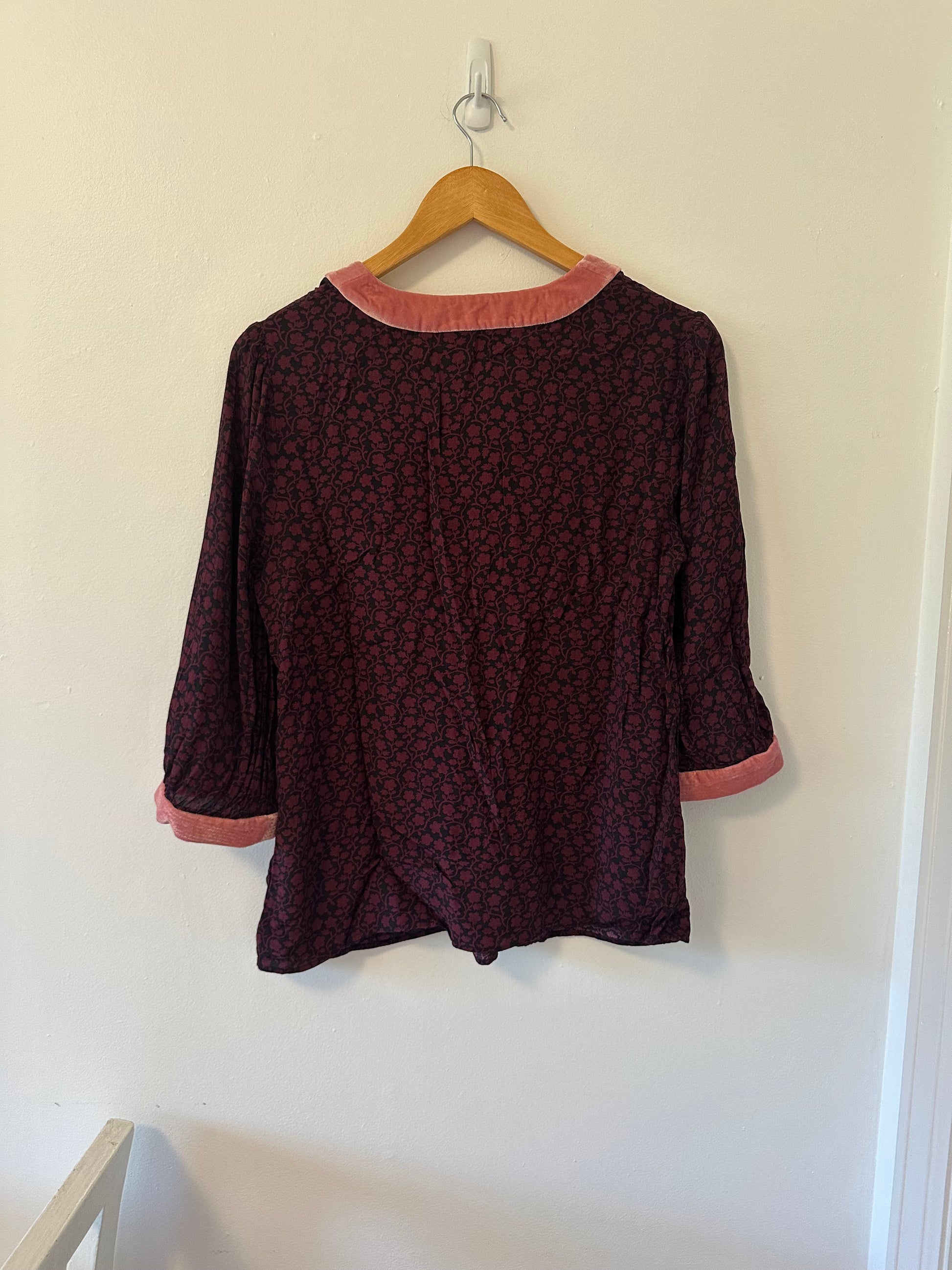 Boden Velvet Trimmed Annabel Top in Pink and Black - Size 8