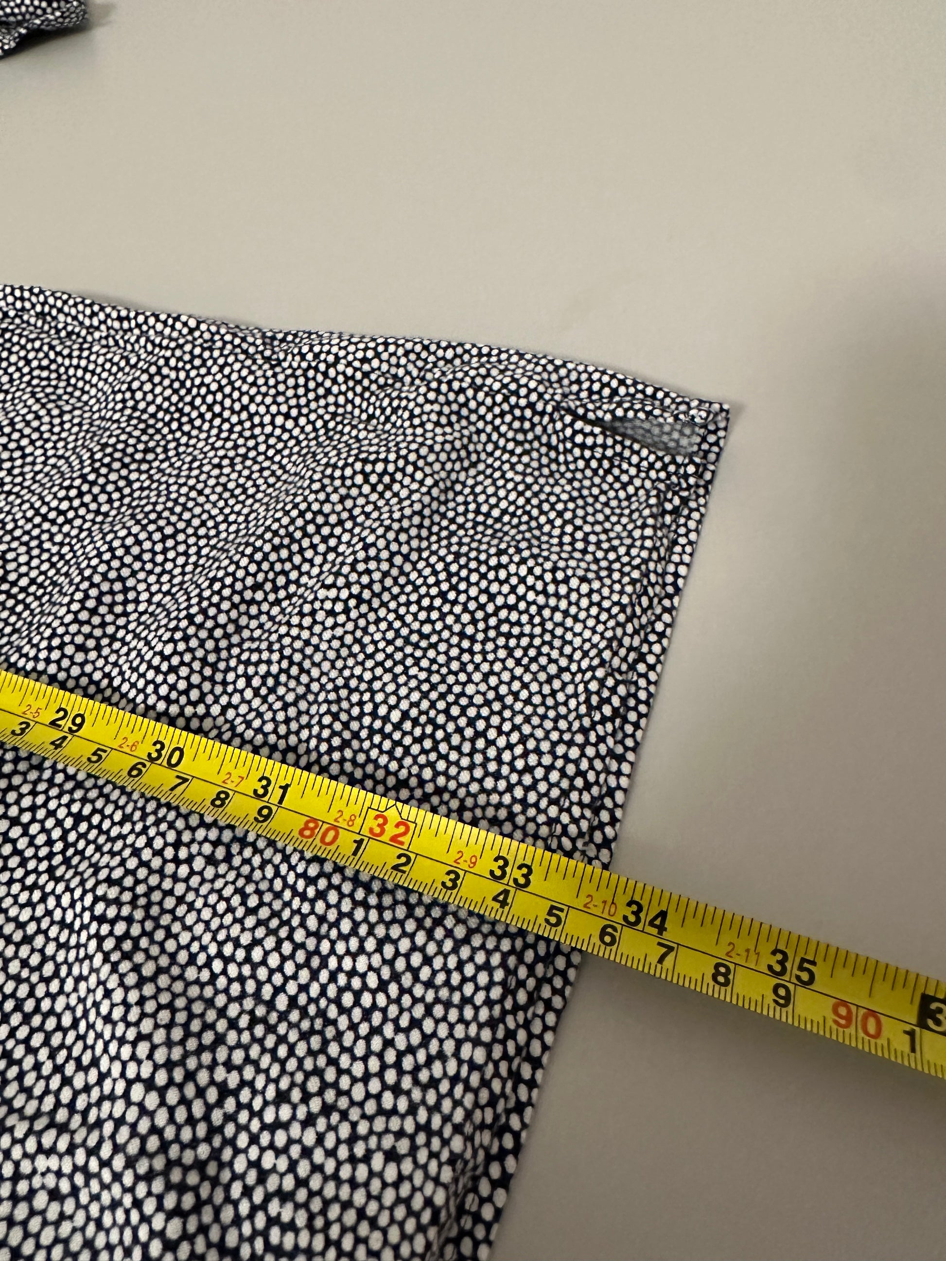 Navy and white polka dots