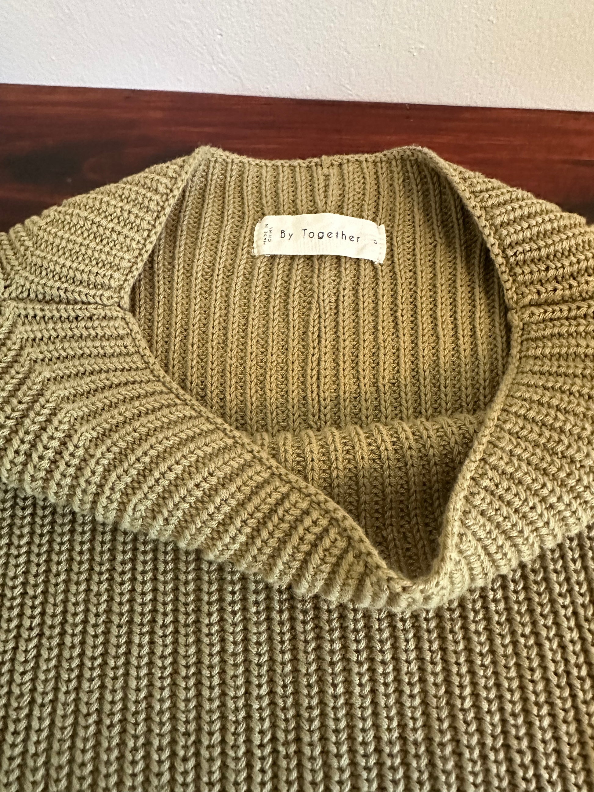 By Together Olive Green Knit Sweater with Pocket - Size Small