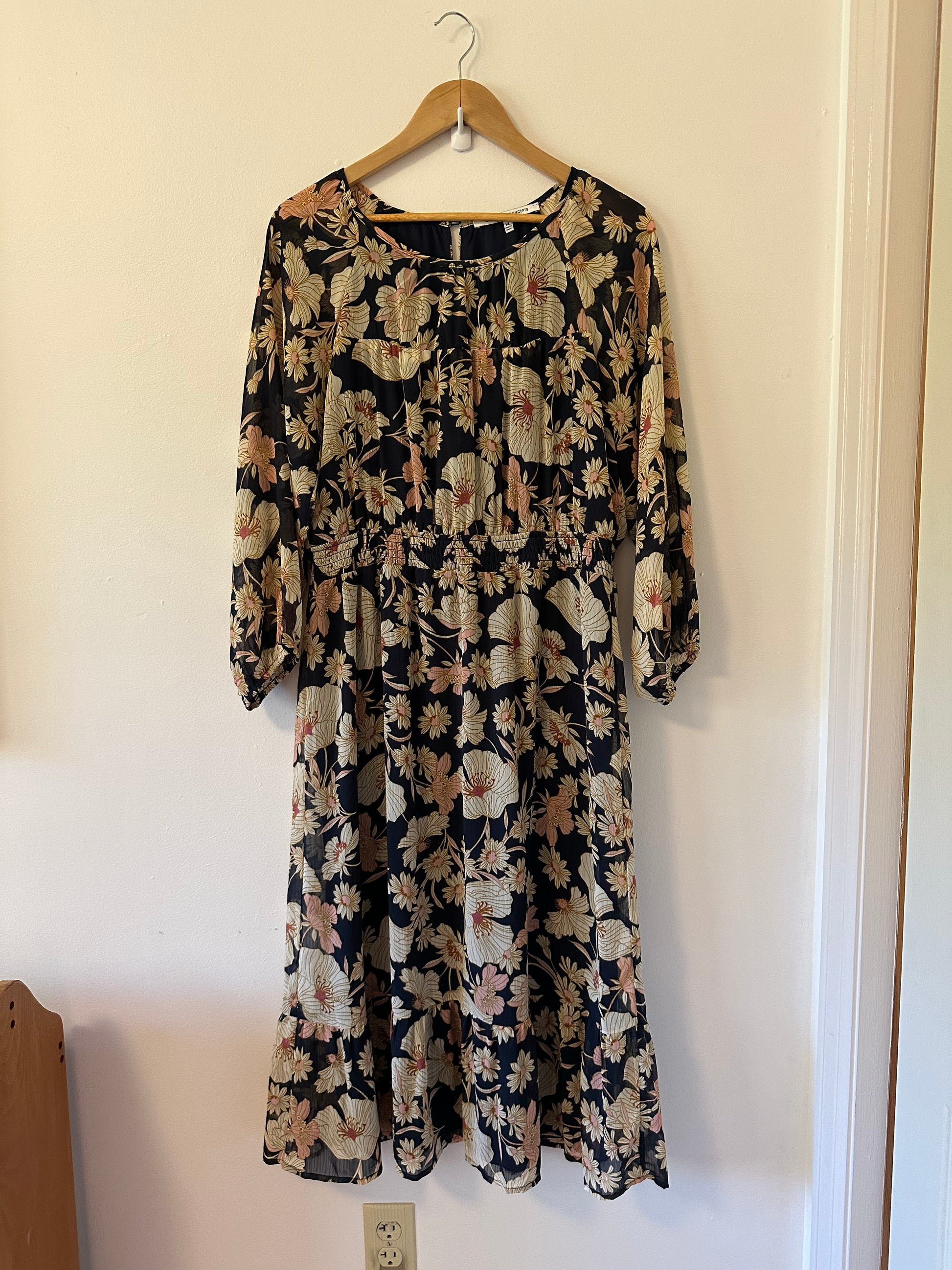 Collective Concepts Chiffon Black and Cream Floral Dress | Size XL