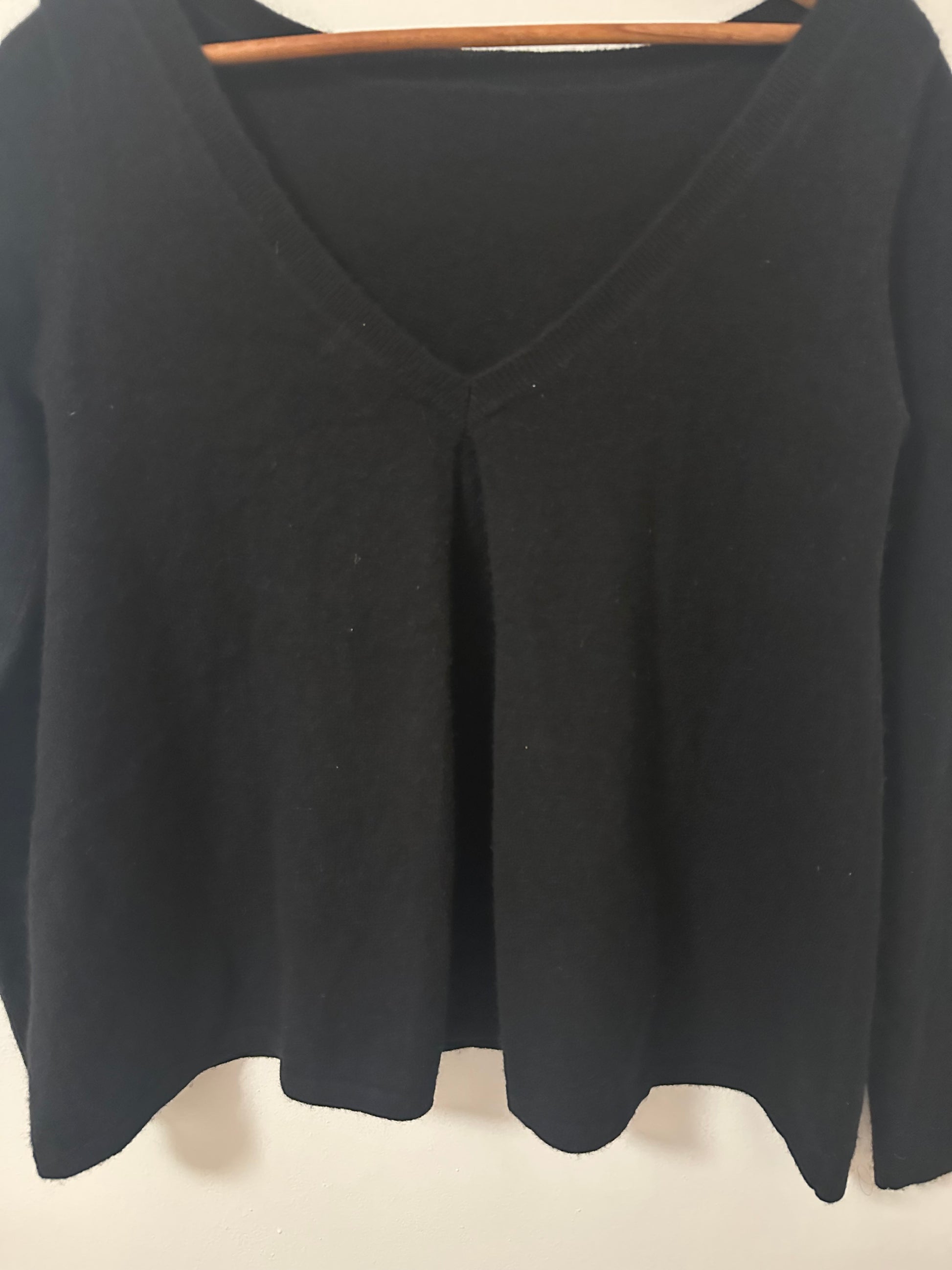 Cortland Park Cashmere Boatneck Sweater with V in the Back in Black | Size XS