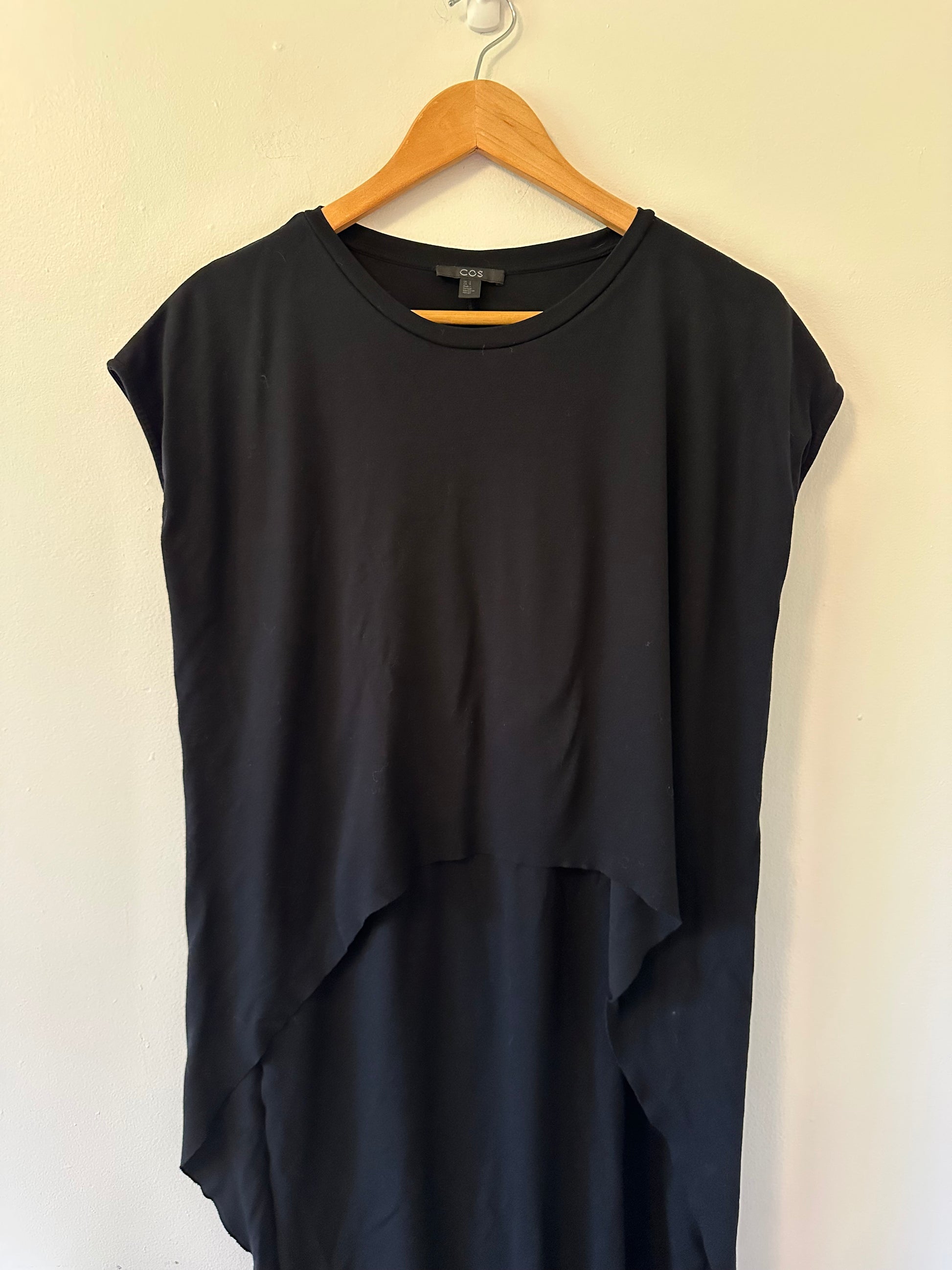 COS - Black Short Sleeve High Low Women’s Top with Raw Edges | Size Small