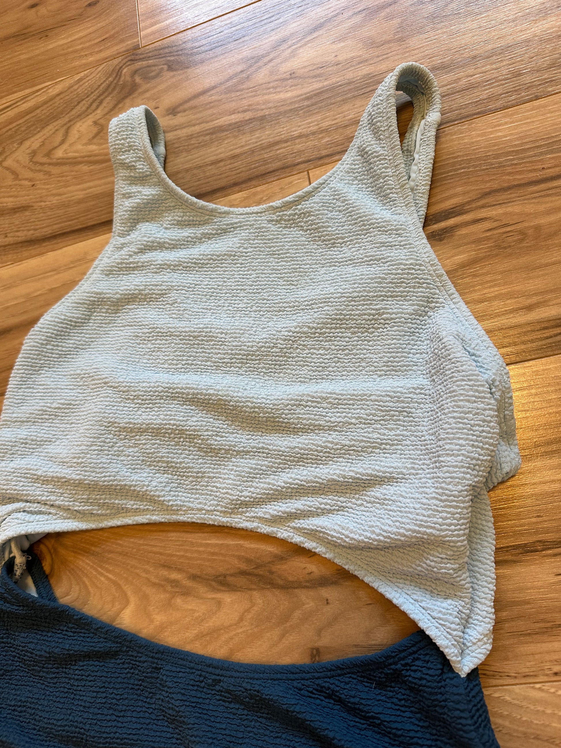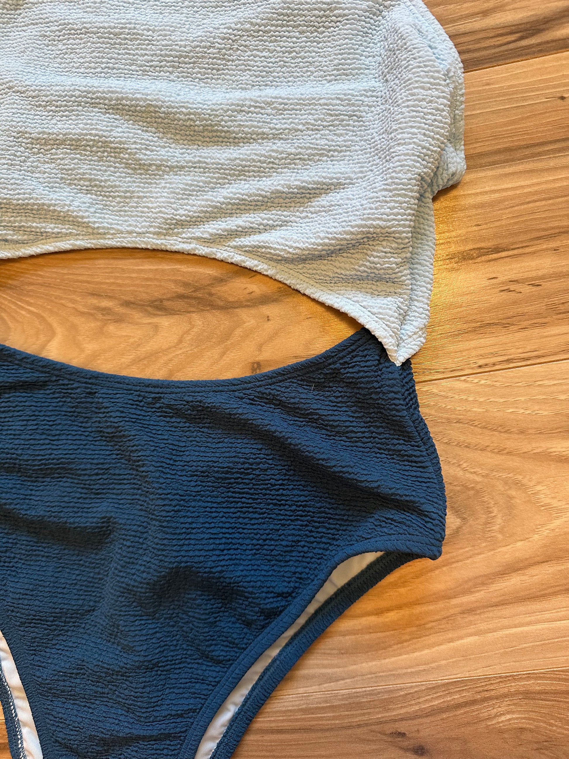 Cupshe Light Blue and Dark Blue Cutout Crinkle Swimsuit - Size Medium
