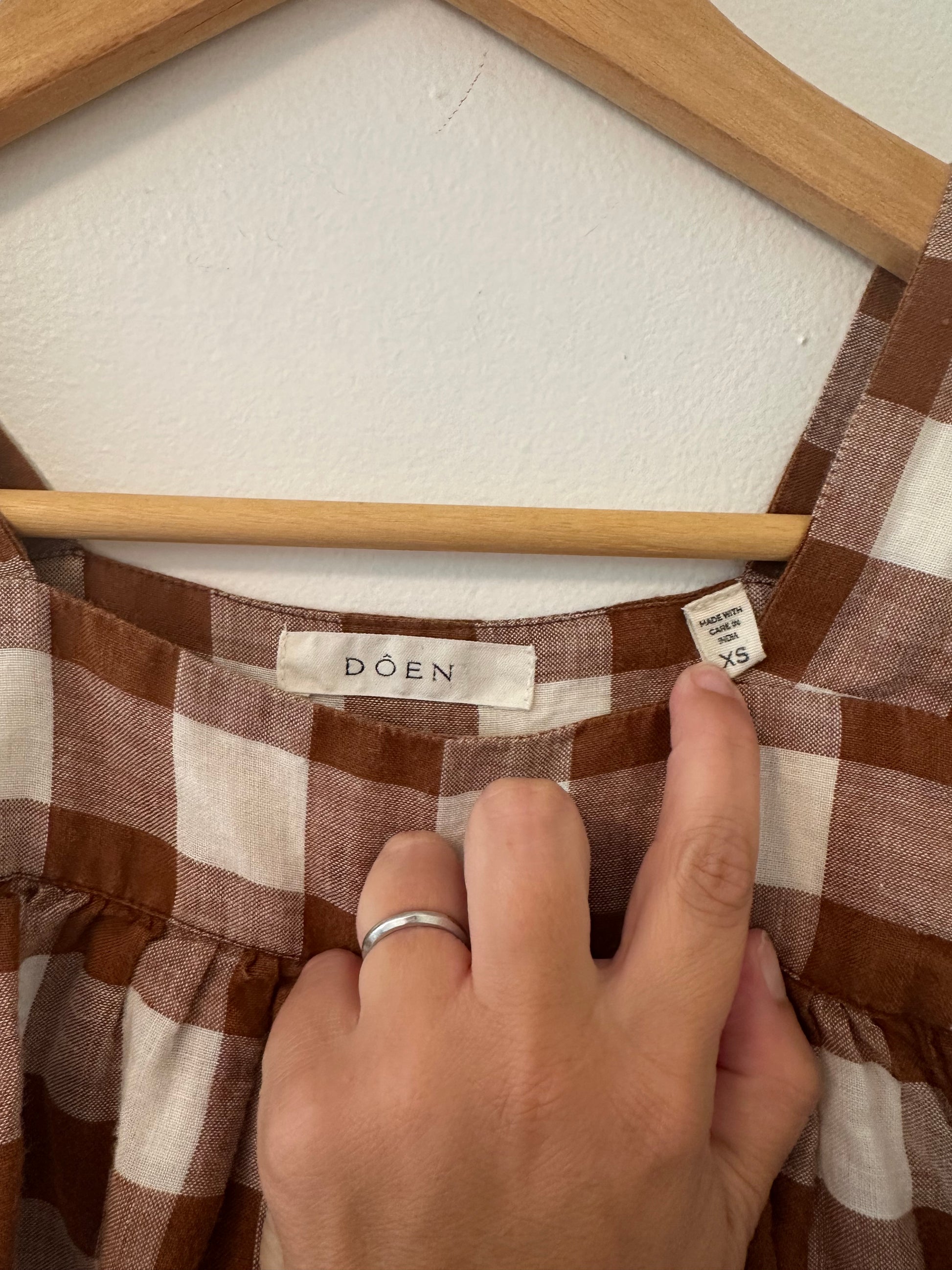 Doen Brown and White Checkered Linen Tank Top - Size XS