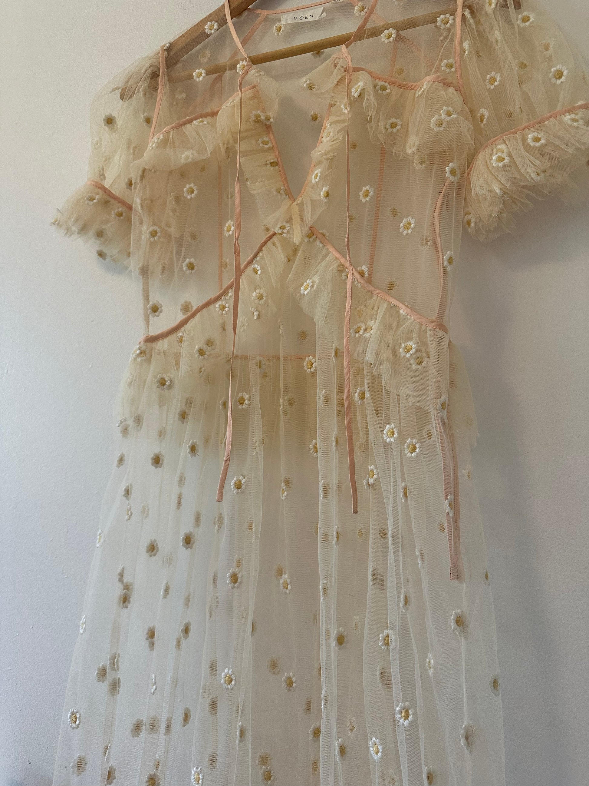 Doen Zelda Sheer Floral Maxi Dress in Faded Peach - Size XS