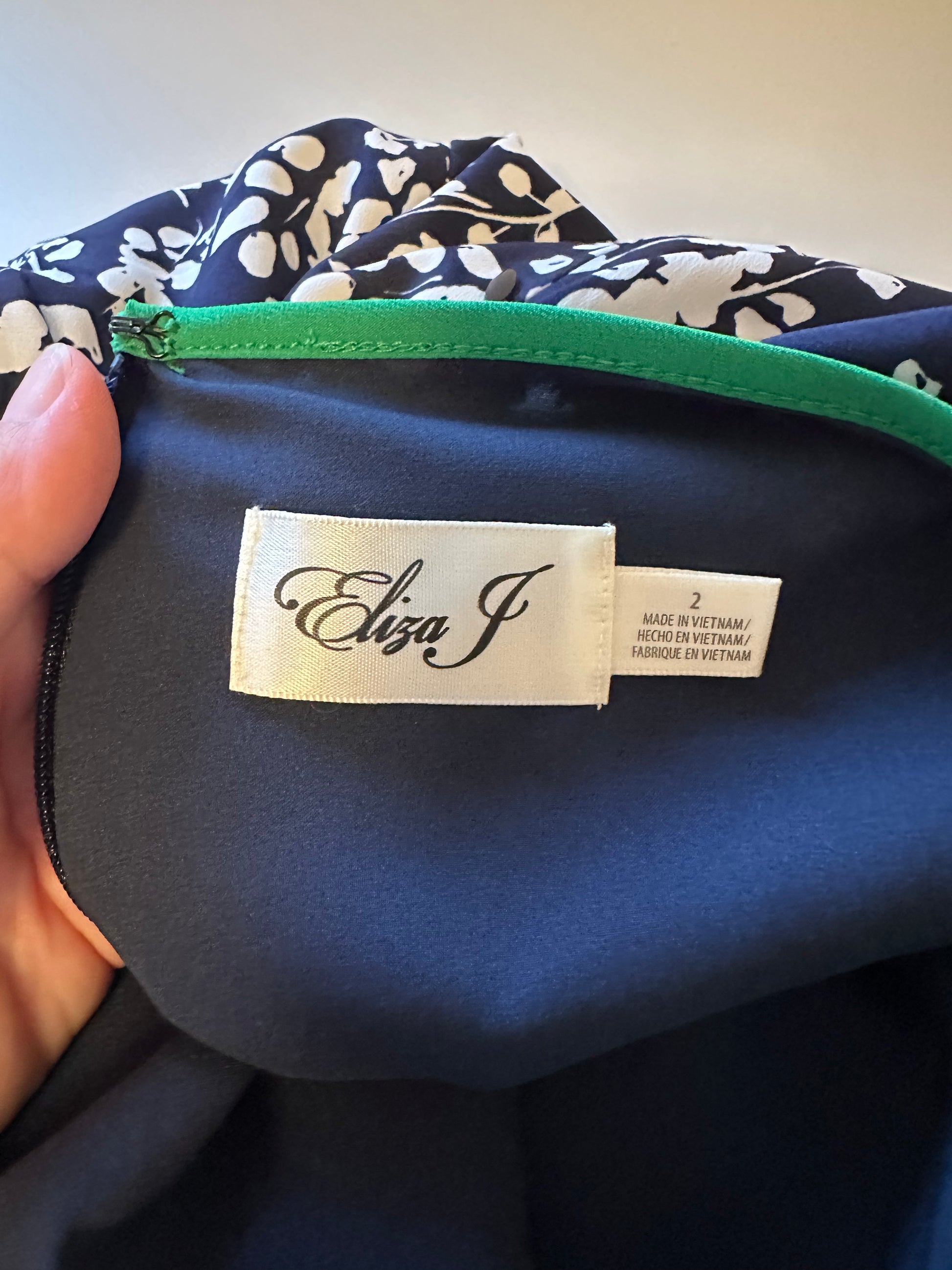 Eliza J NWT Leaf Print Navy and White Floral Wide Leg Cropped Jumpsuit | Size 2