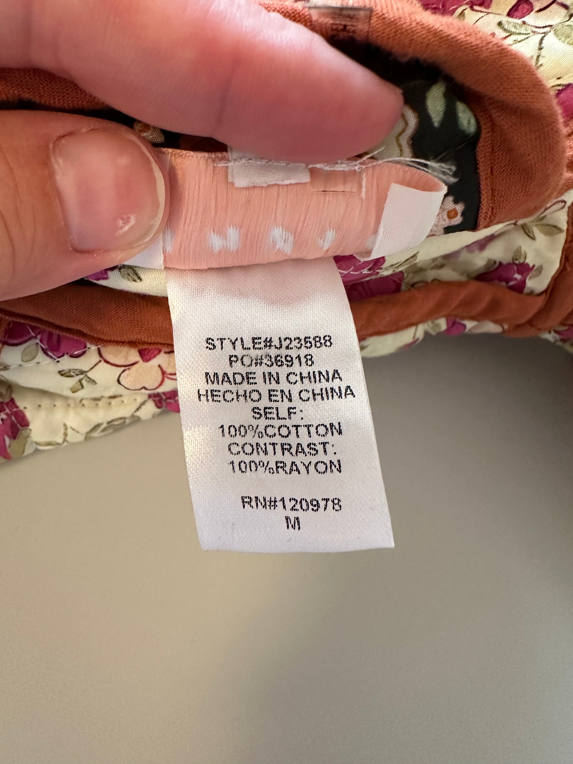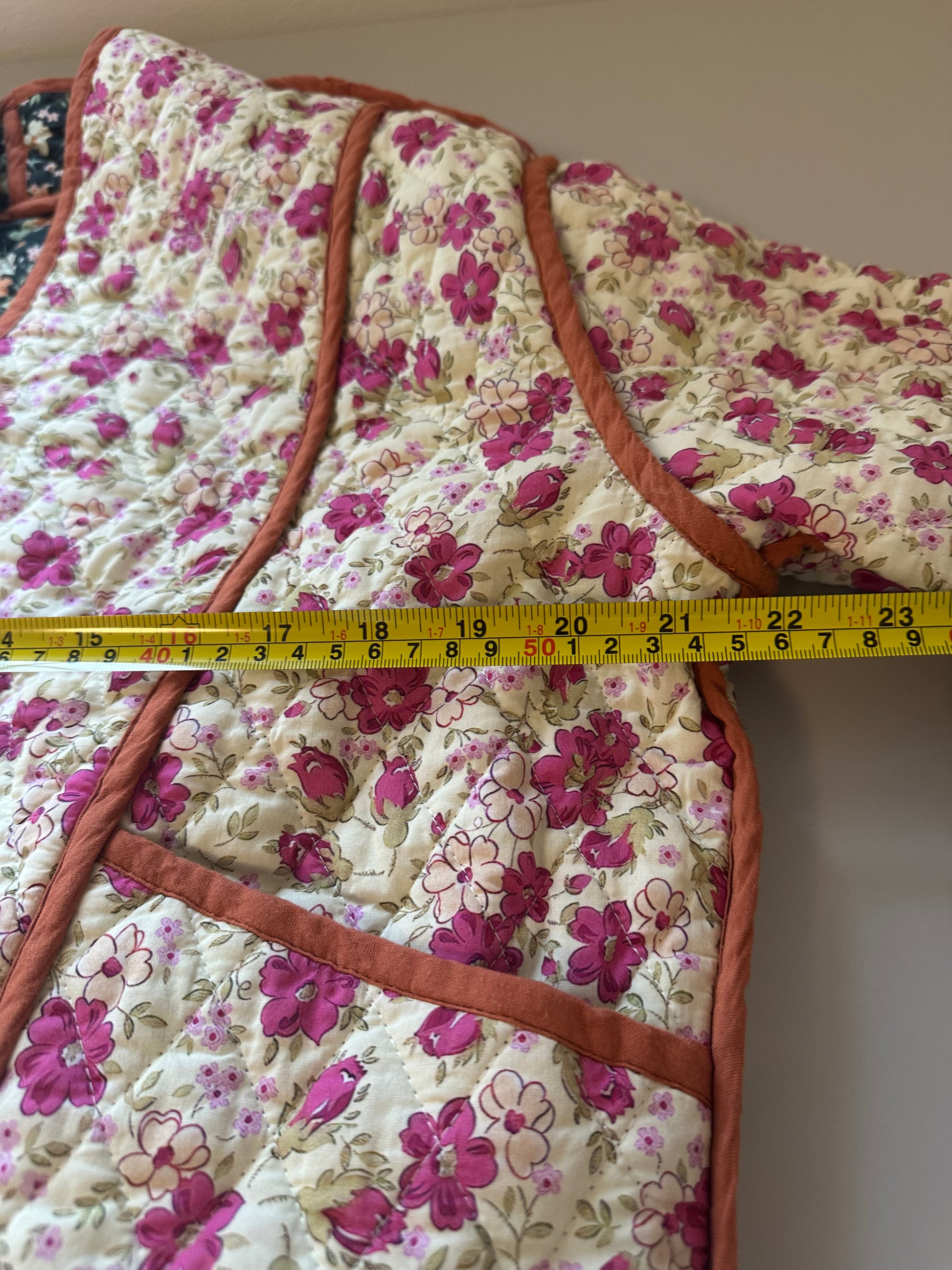Entro Black Ecru Floral Printed Quilted Reversible Jacket | Size Medium