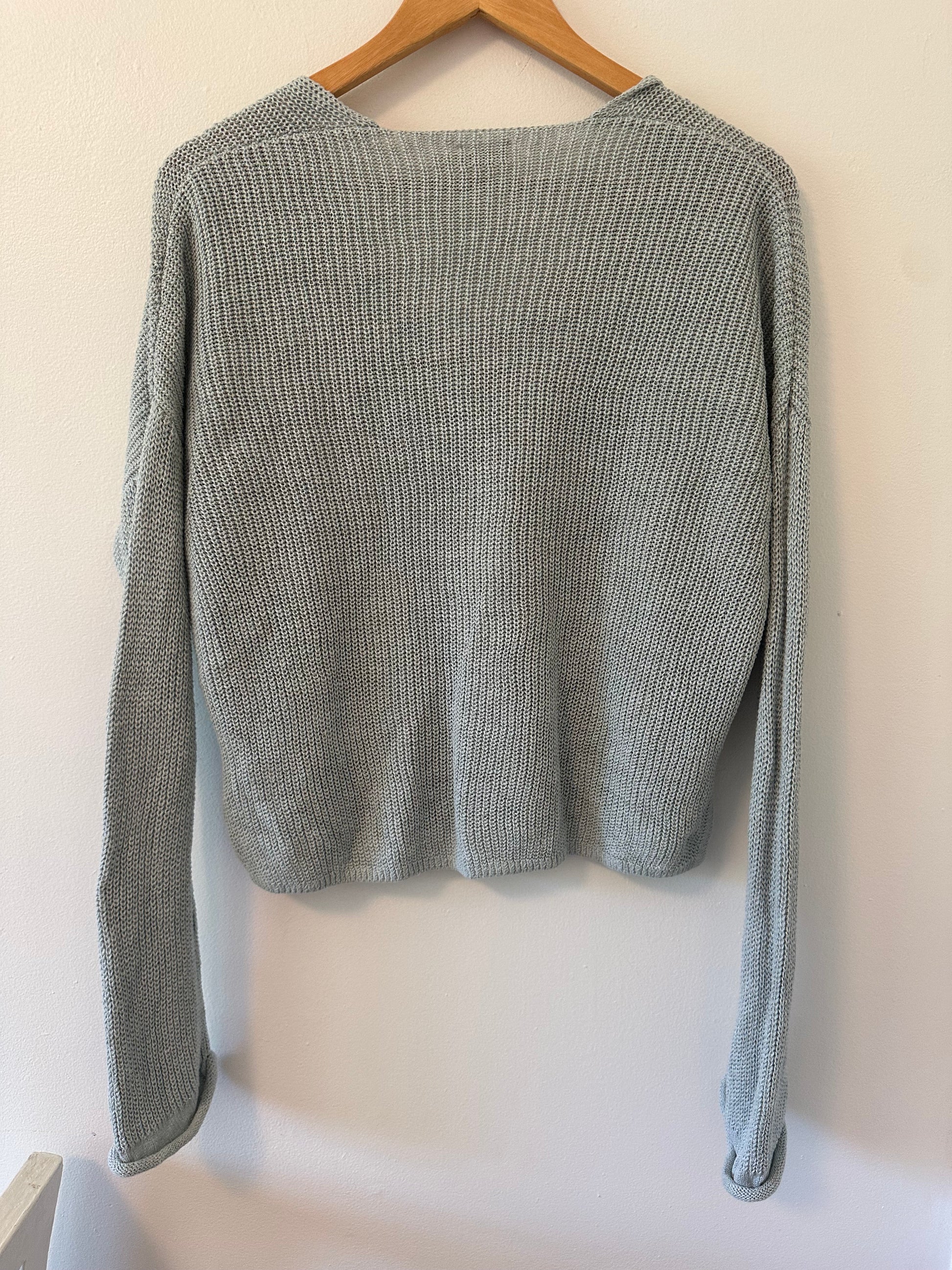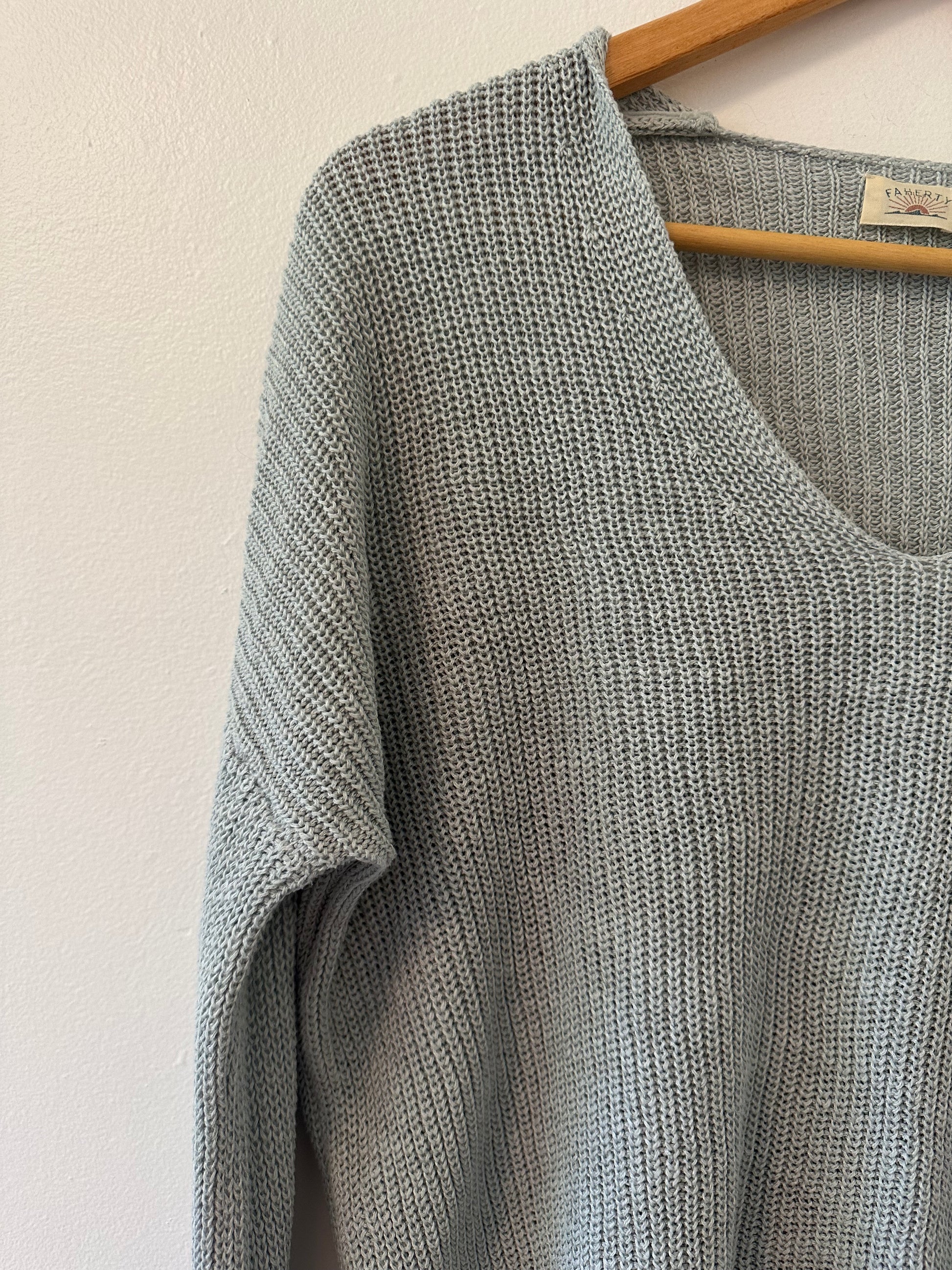 Faherty Miramar Linen V-Neck Sweater in Chalk Blue - Size Small