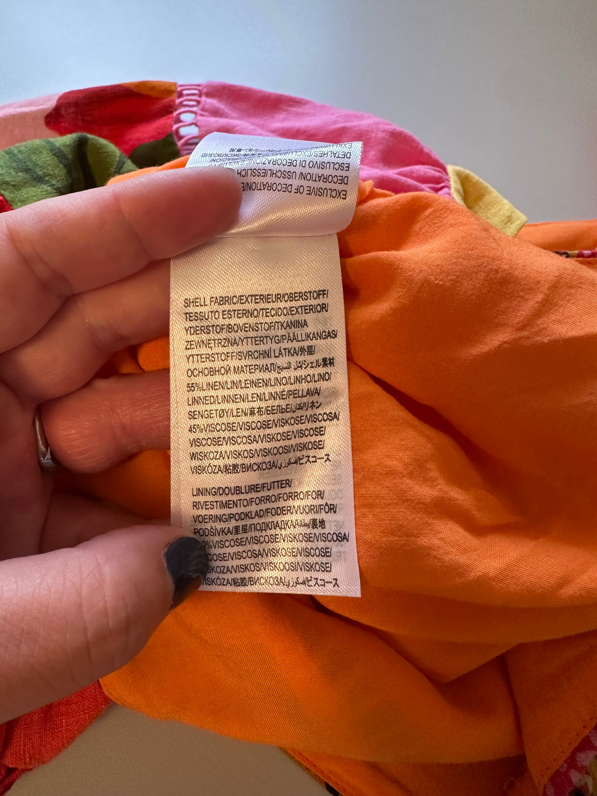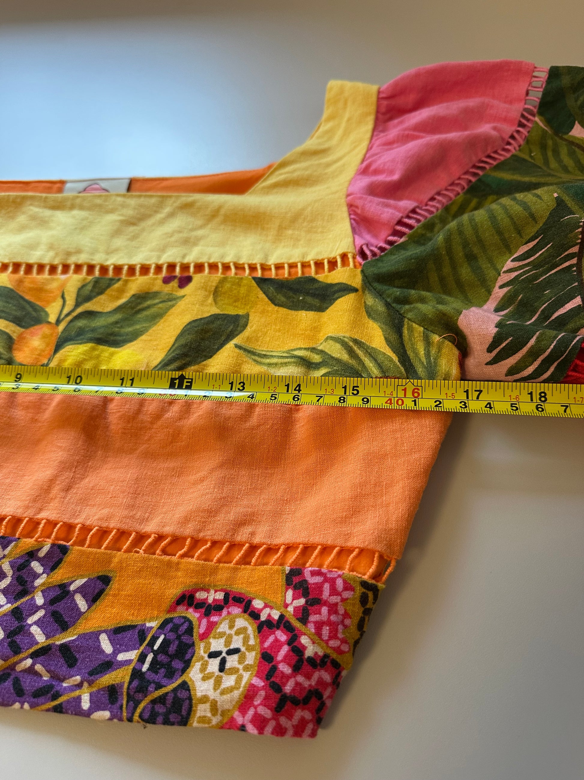 FARM Rio Rainbow Mixed Prints Tiered Linen Blend Top | Size Medium