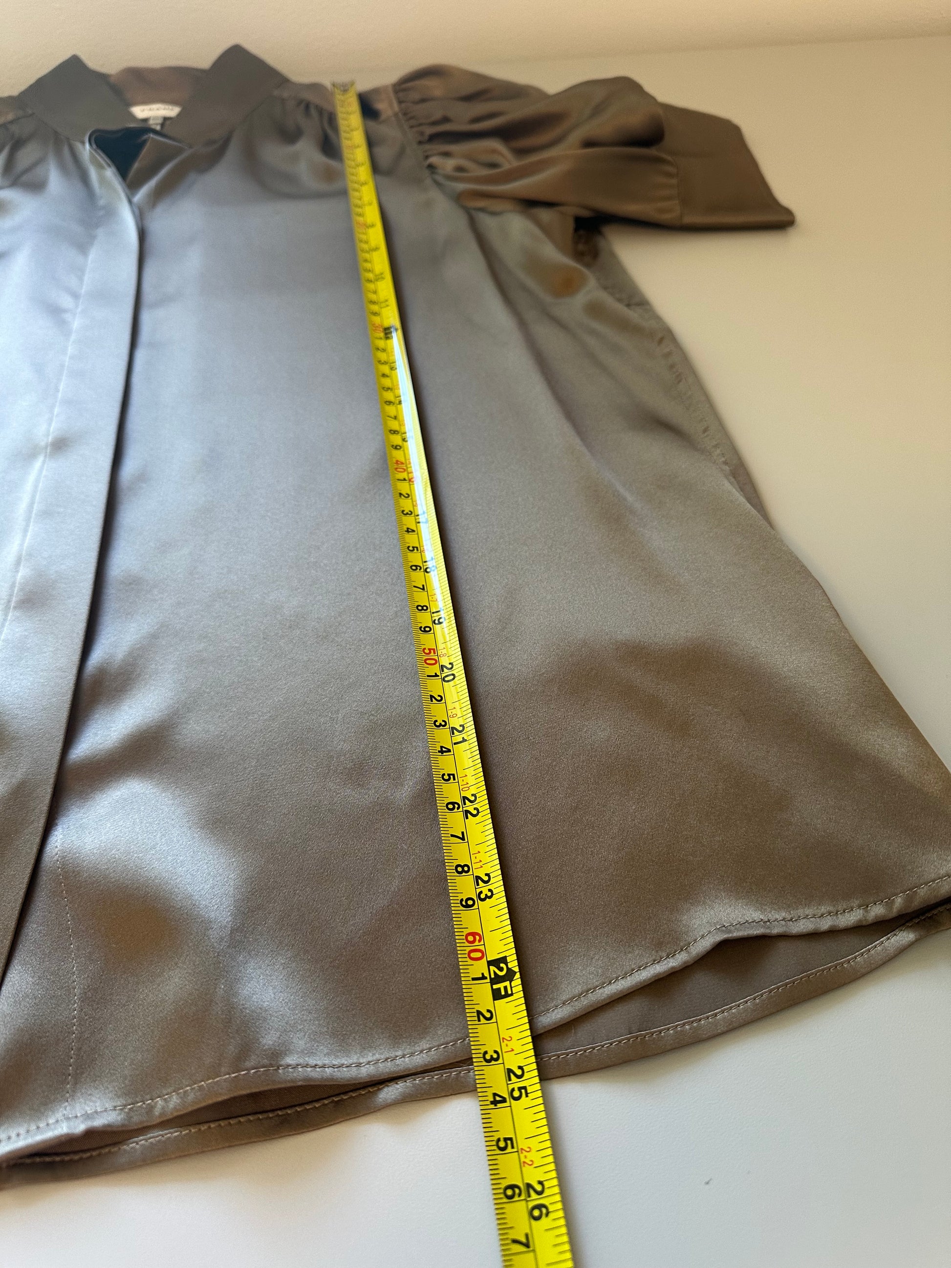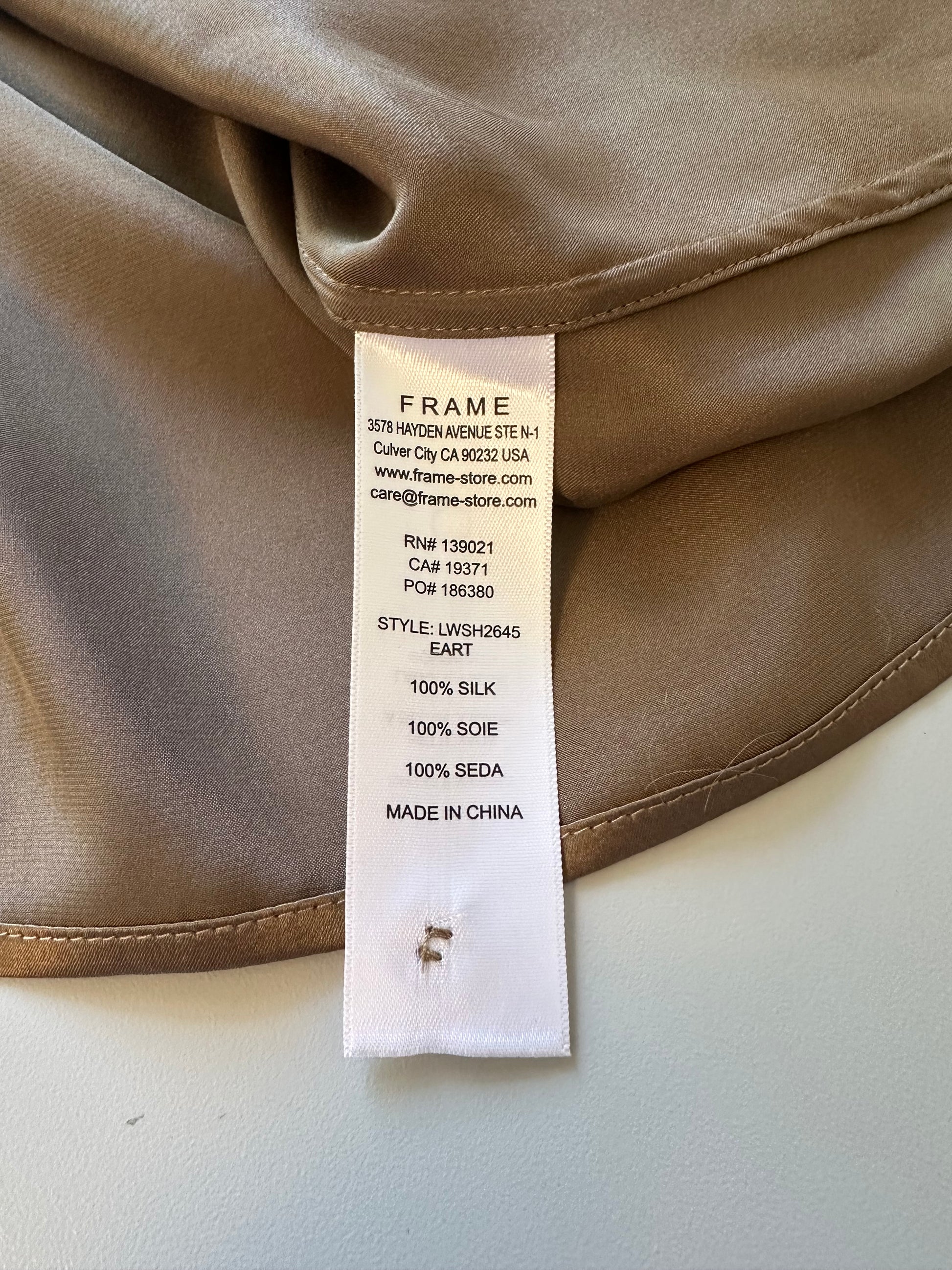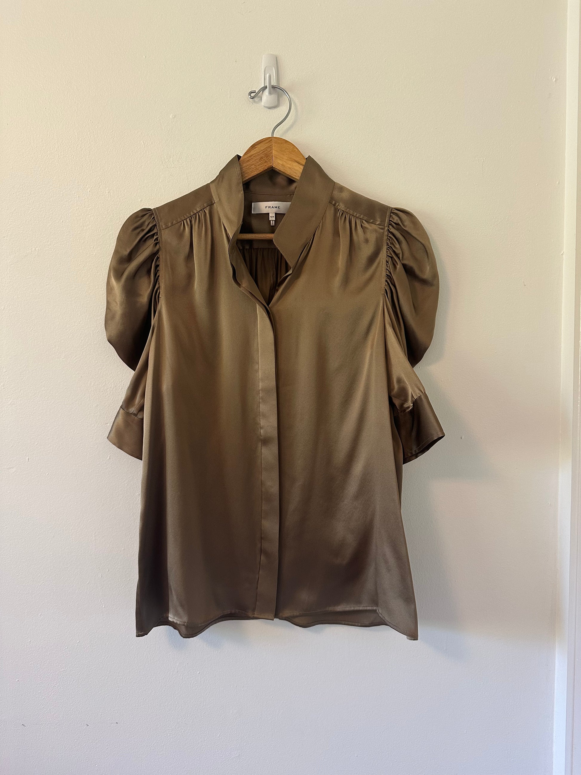 Frame Gillian Silk Puff Sleeve Blouse in Brown | Size Medium
