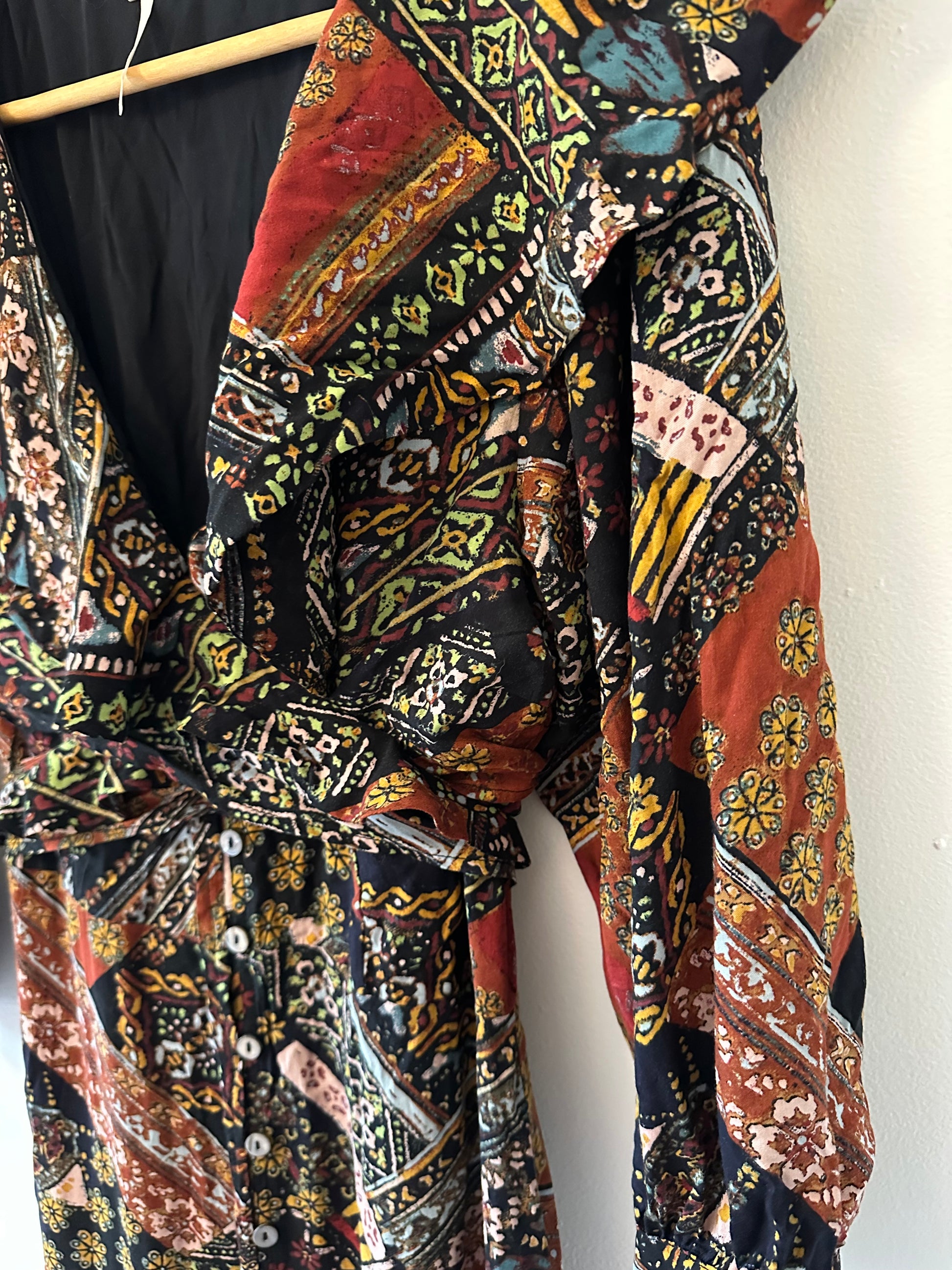 Free People Lennon Multicolor Patchwork Long Sleeve Maxi Dress - Size Medium