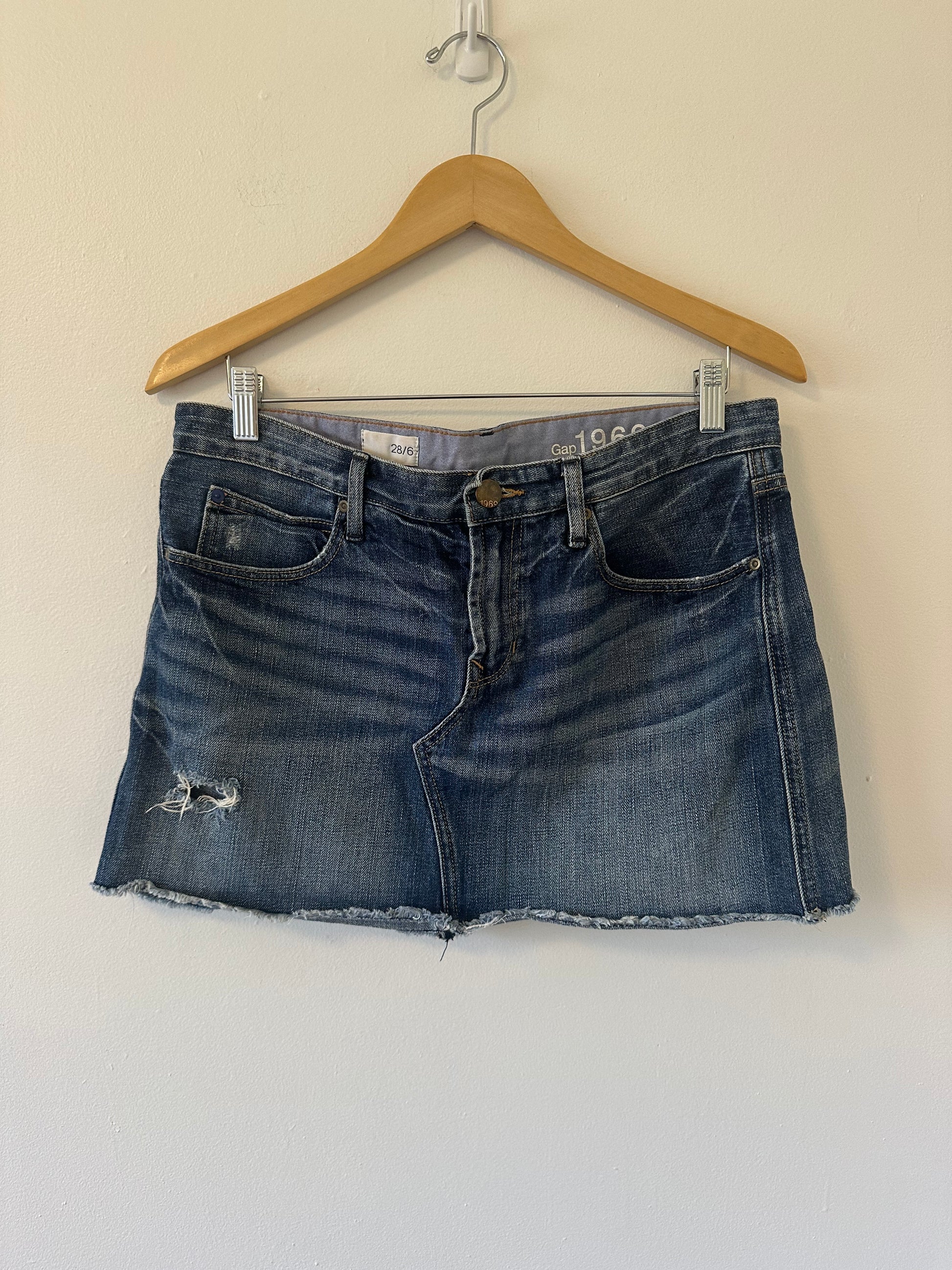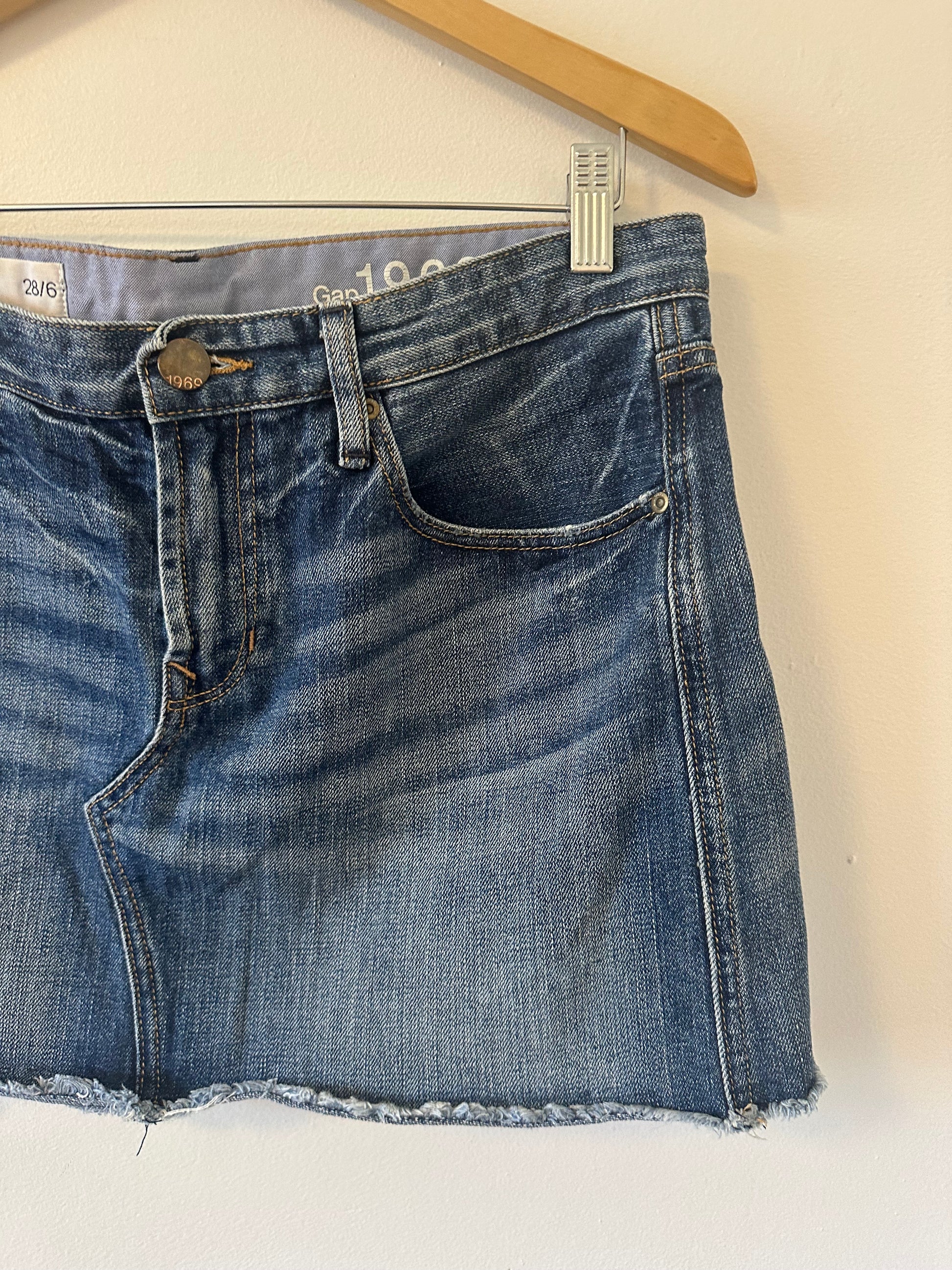 Gap Vintage Women's Cotton Denim Distressed Mini Skirt With Raw Hem | Size 6