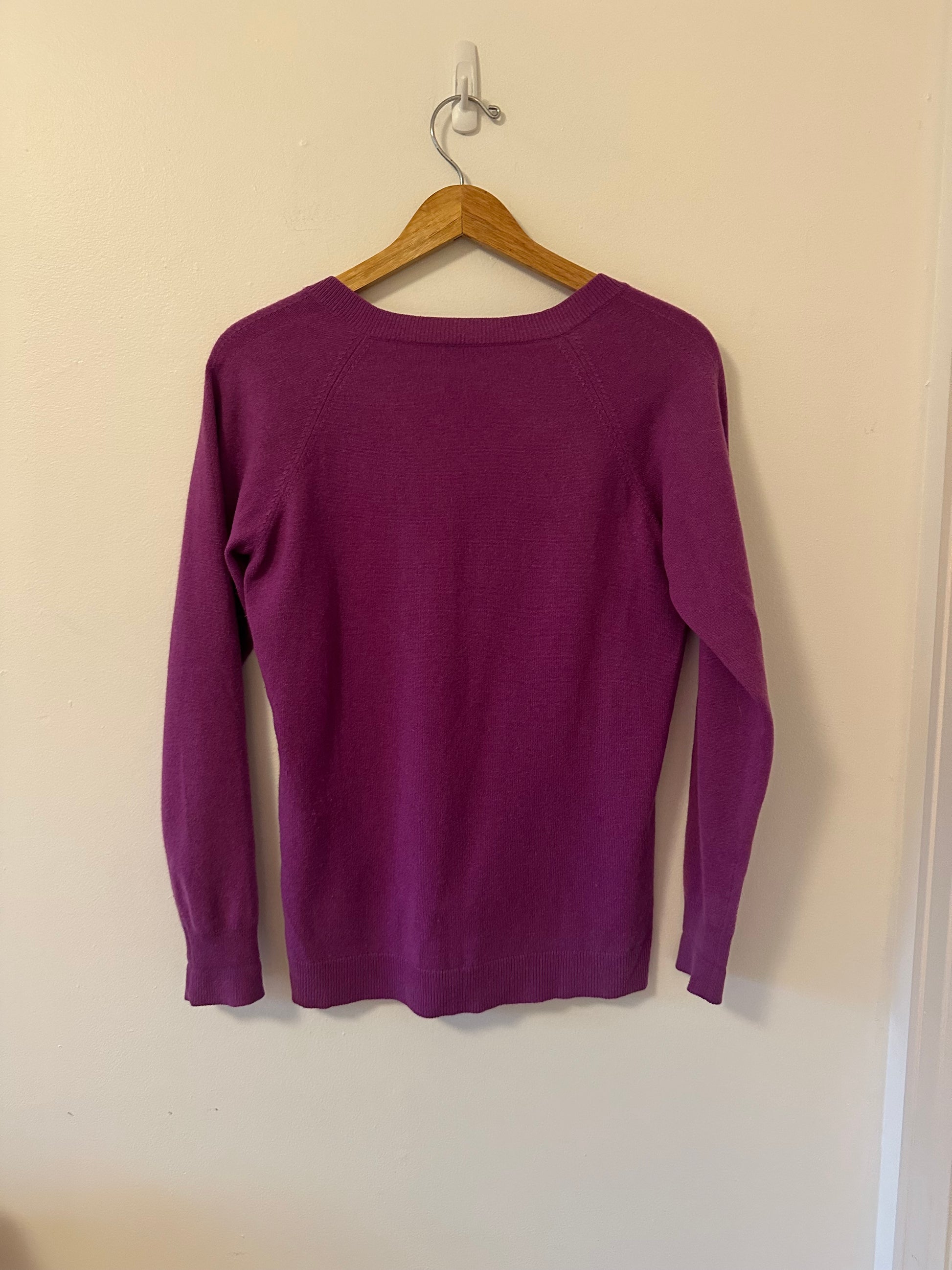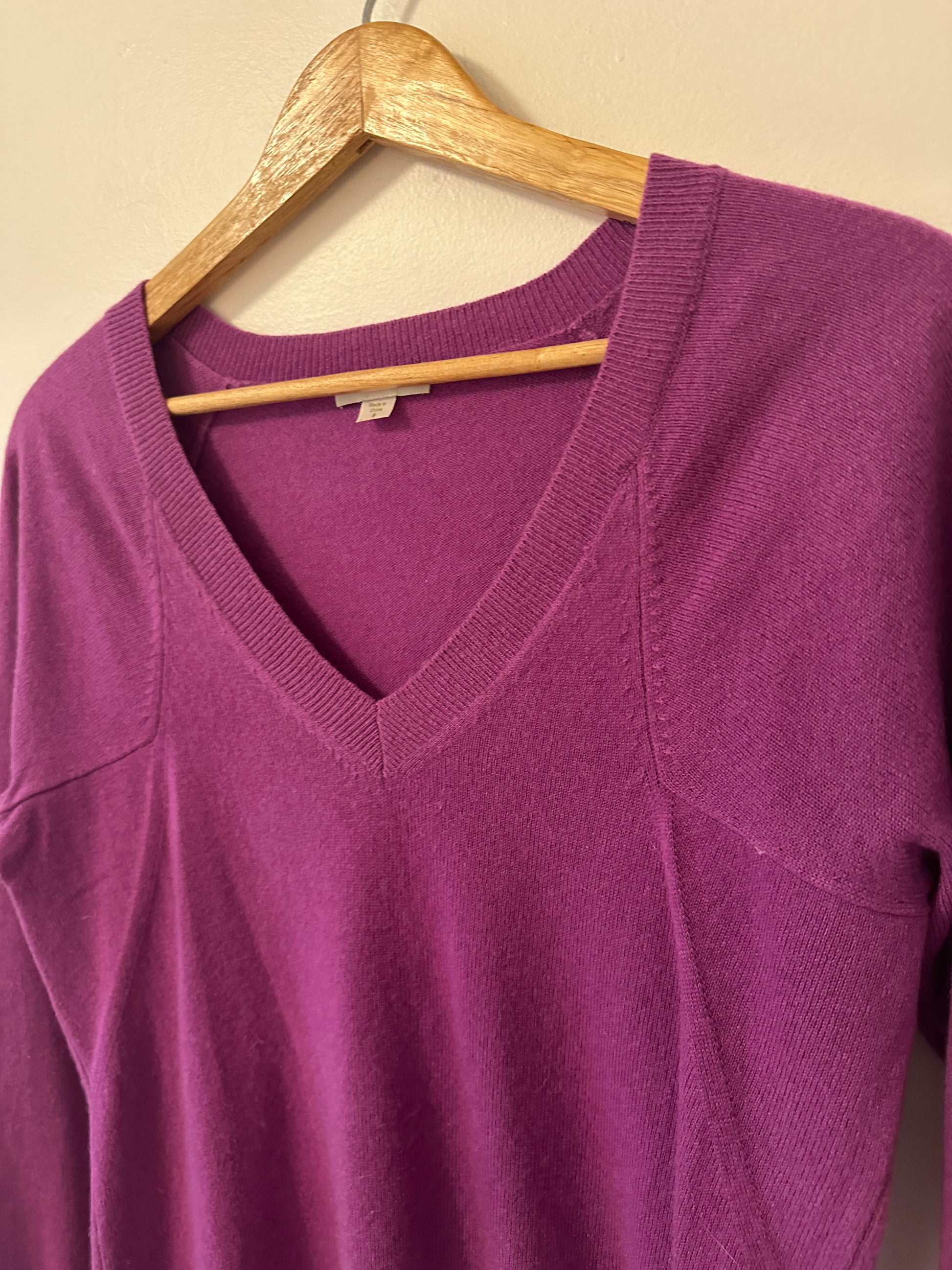 Garnet Hill Bright Purple V-Neck Cashmere Sweater | Size Small