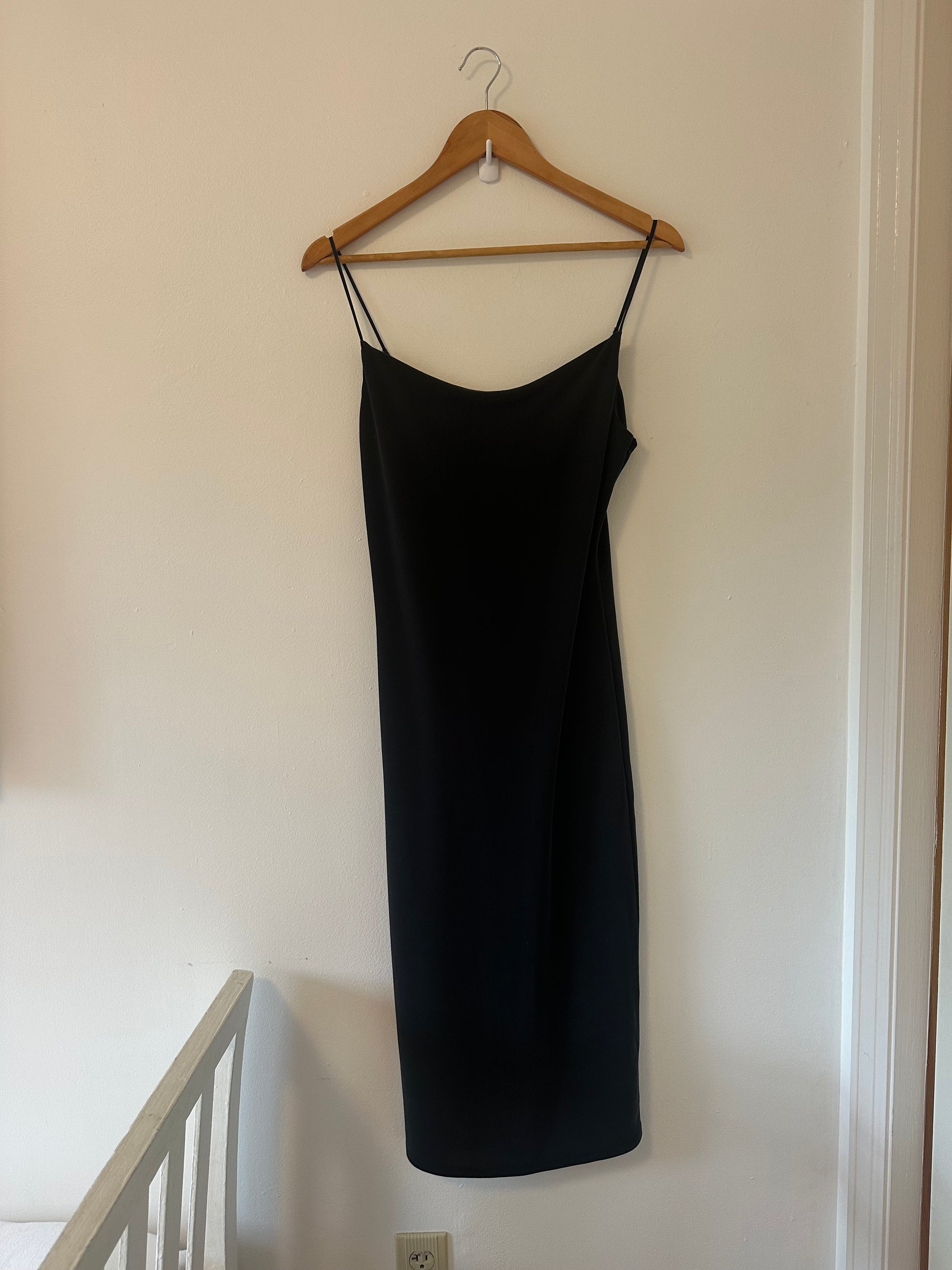Fabric: Buttery soft satin like material. Midi length. Adjustable straps. Cowl neckline.