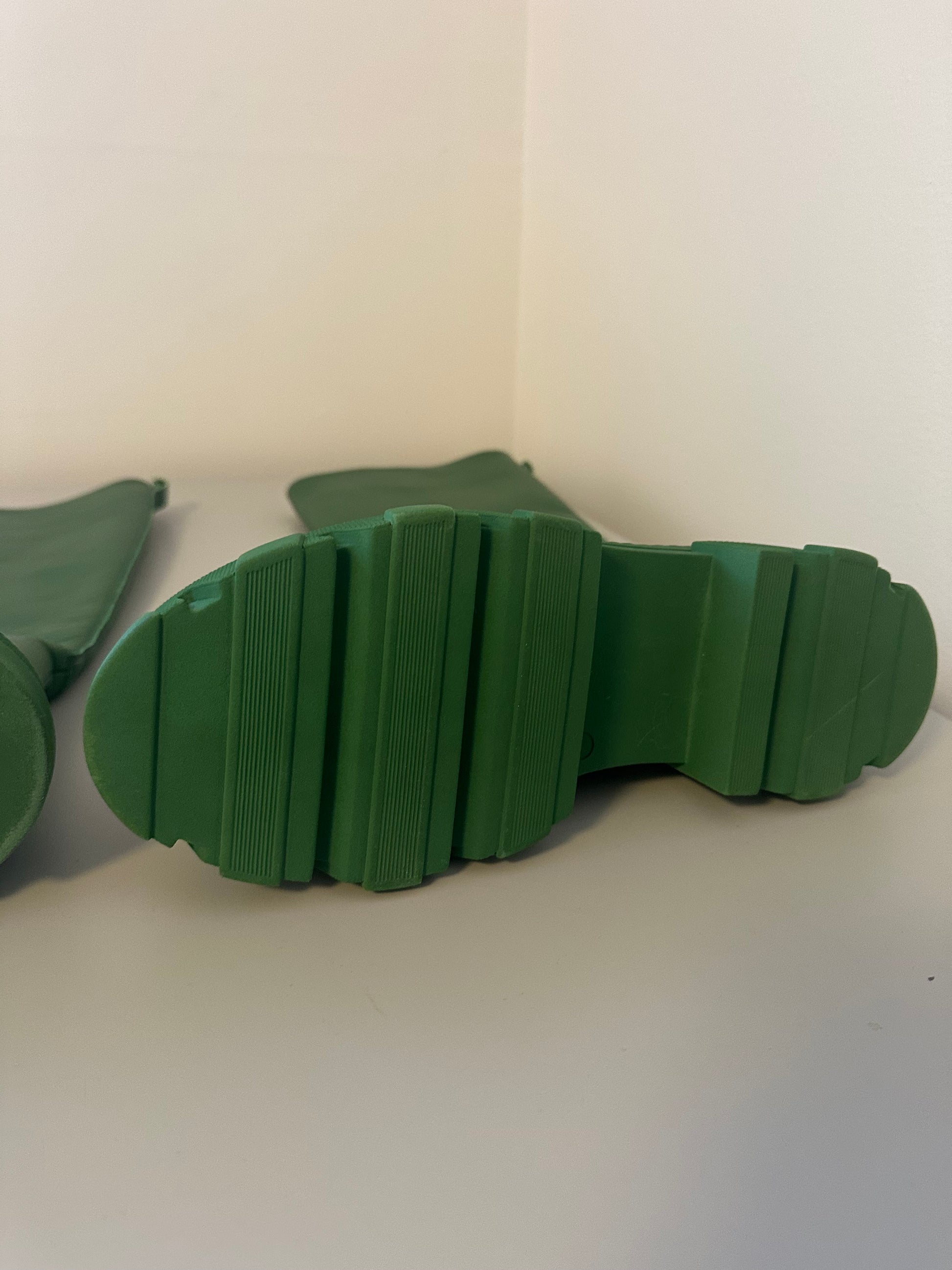Gia Borghini x Pernille Tall Green Leather Knee High Rain Boots | Size 38.5