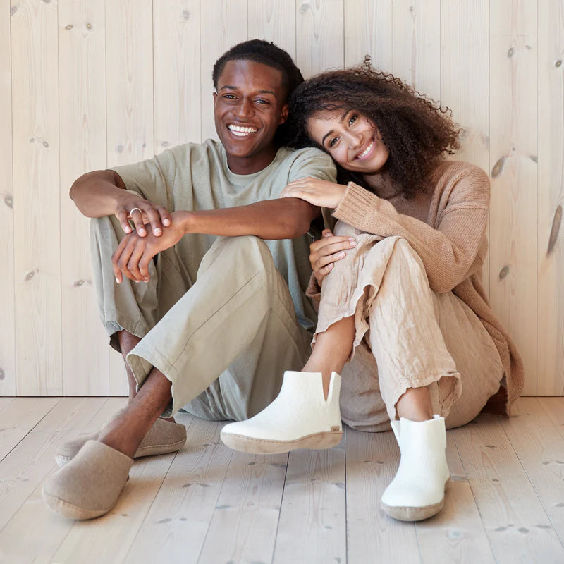 The slippers are designed and produced with respect for animal, people and nature. Choose the boot model if you want a little extra warmth and enjoy the soft wool up to your ankle.