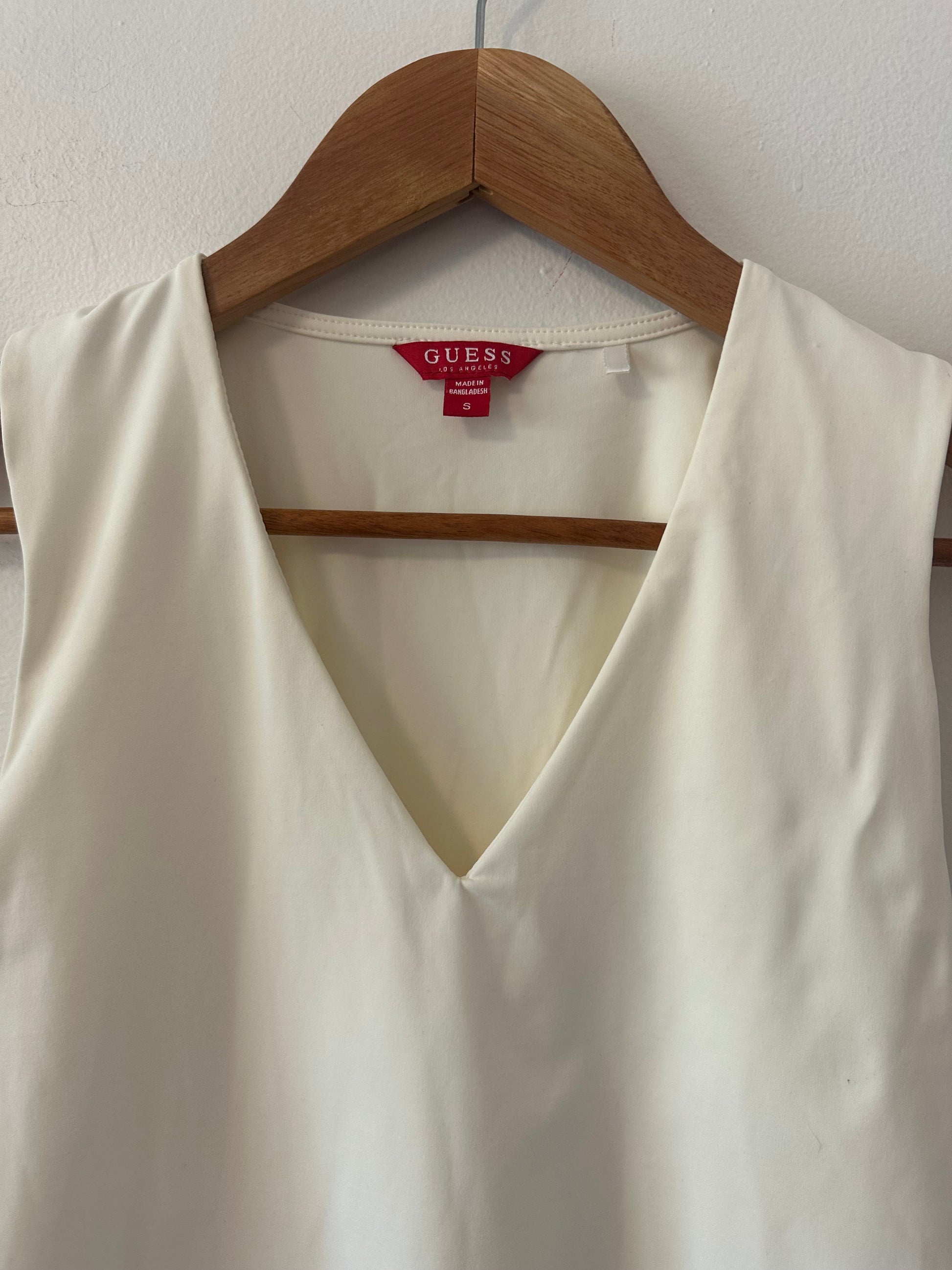 Guess Women's White V-Neck Smoothing Sleeveless Bodysuit | Size Small
