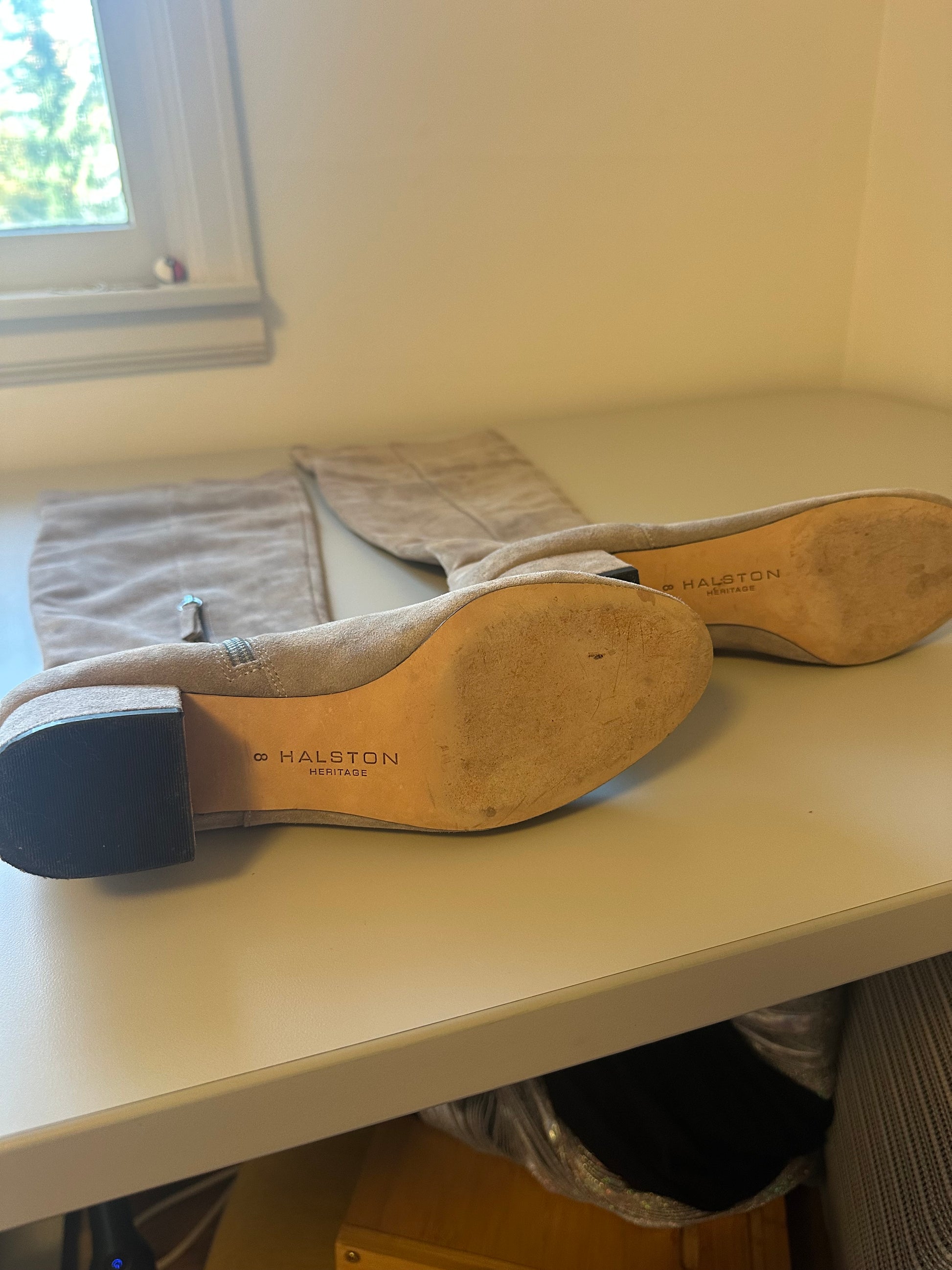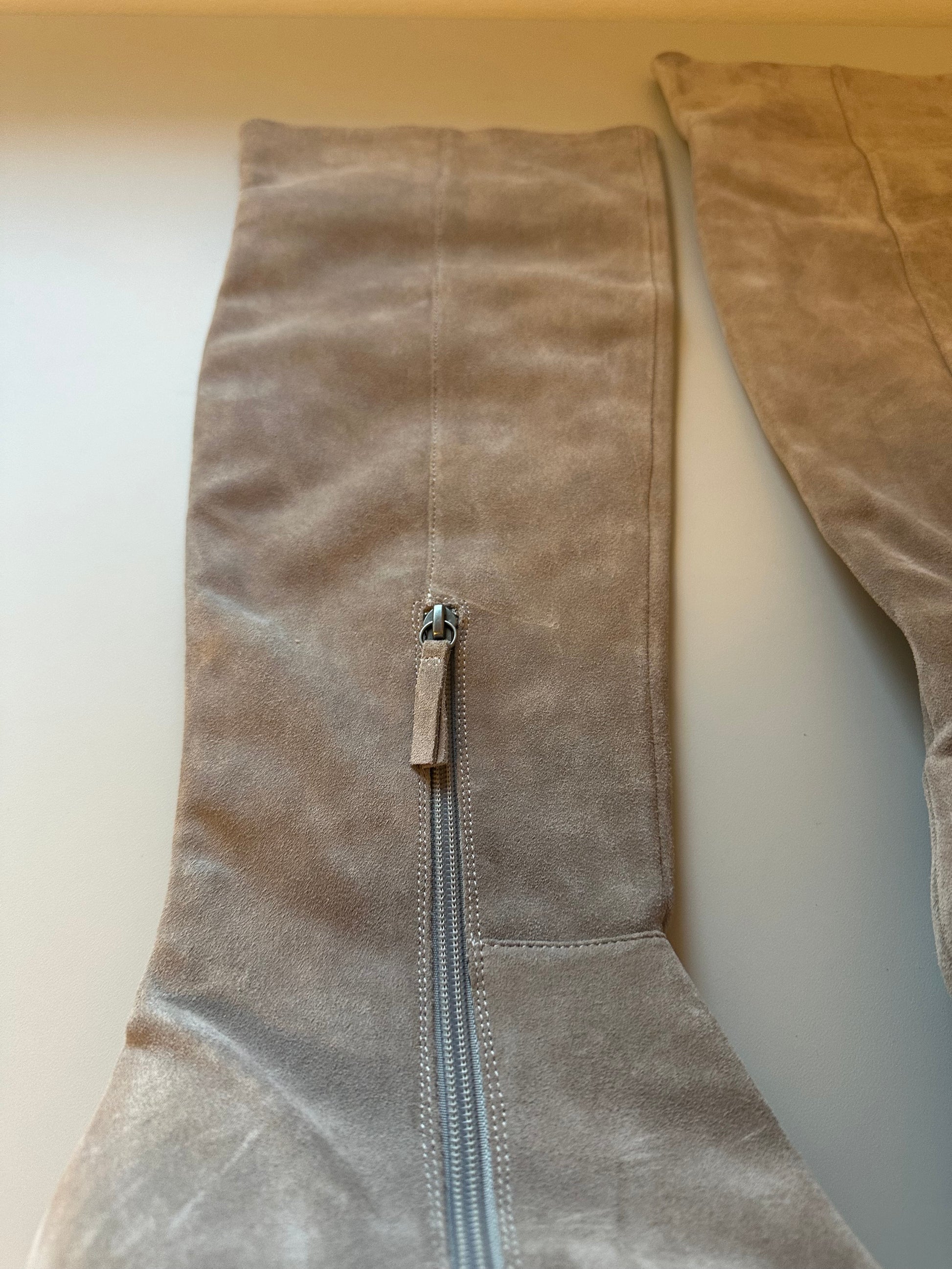 Halston Heritage Light Tan Over the Knee Suede Heeled Boots | Size 8
